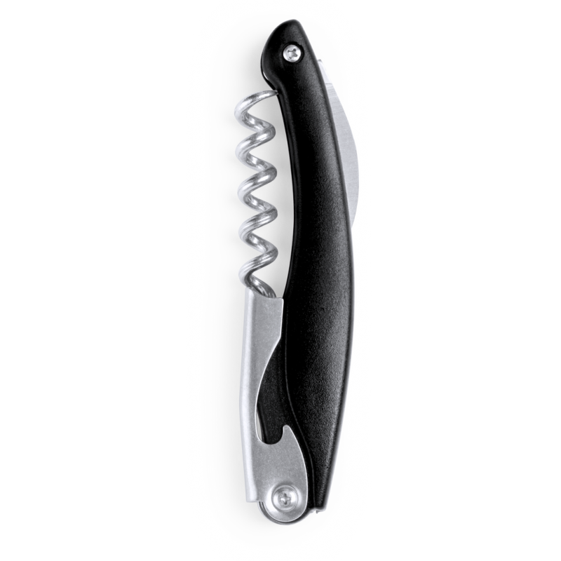 Clásico sacacorchos con accesorios de acero inox. Incluye cortacápsulas y abridor. Presentado en caja individual.
