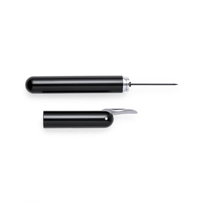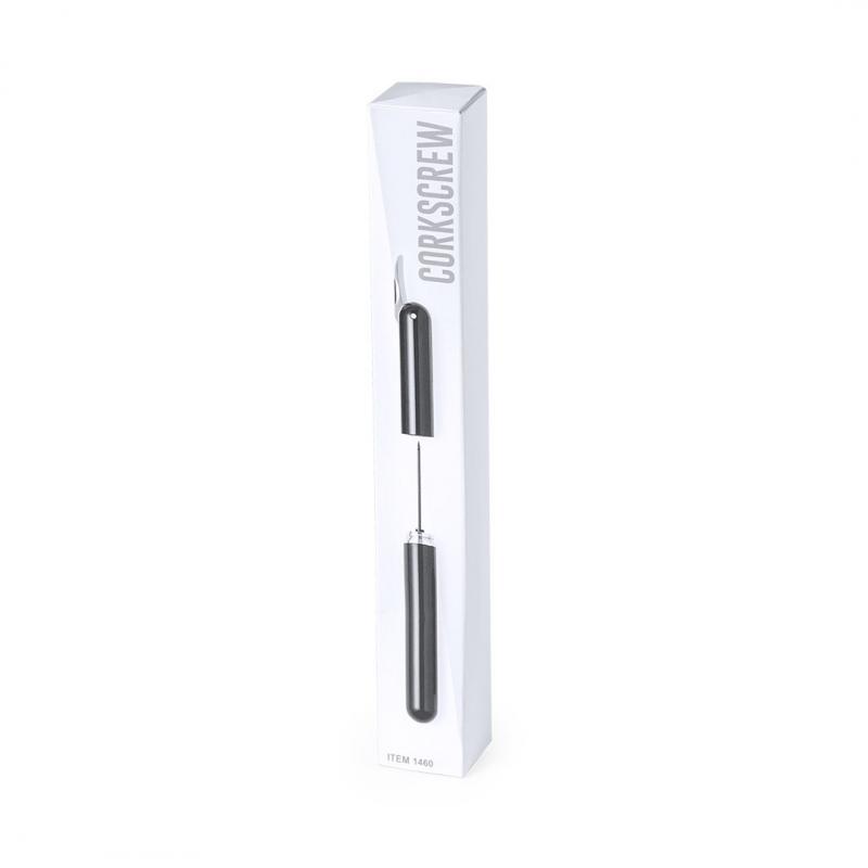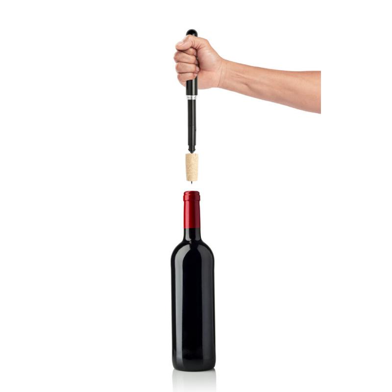 Sacacorchos con bomba de aire integrada, para una extracción del tapón de corcho fácil y segura. Fabricado en resistente material ABS y con cortacápsulas. Presentado en atractiva caja individual de diseño.