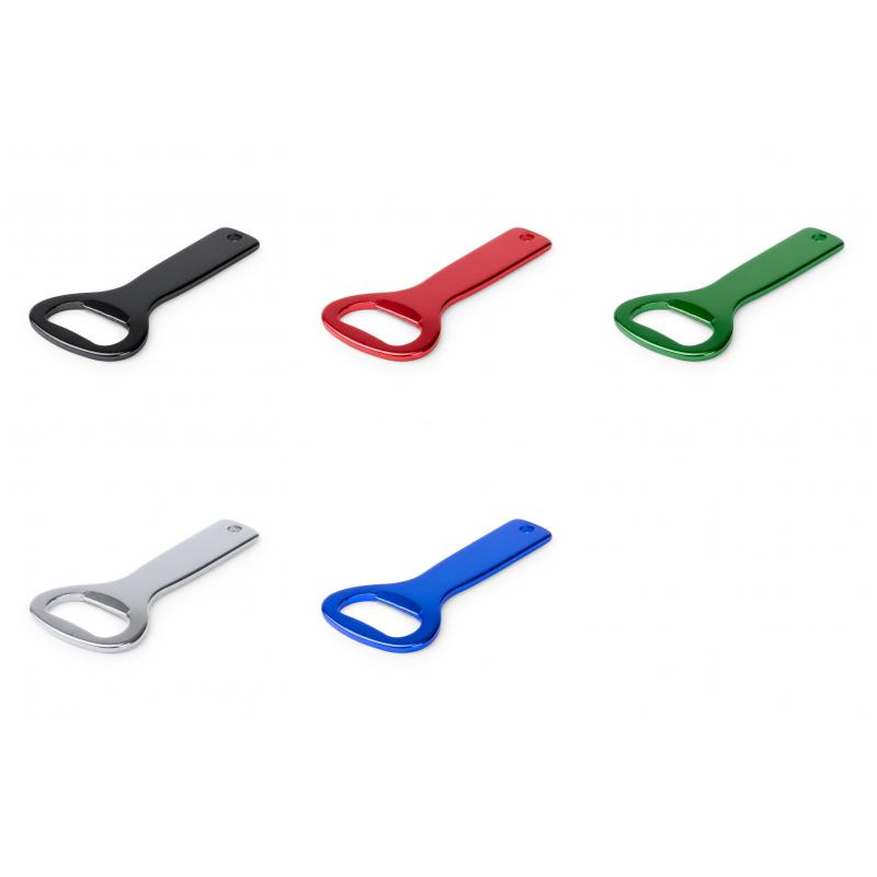 Abridor de aluminio en variada gama de vivos colores. Con mango troquelado para lanyard -no incluido-. Especialmente diseñado para marcaje en láser.