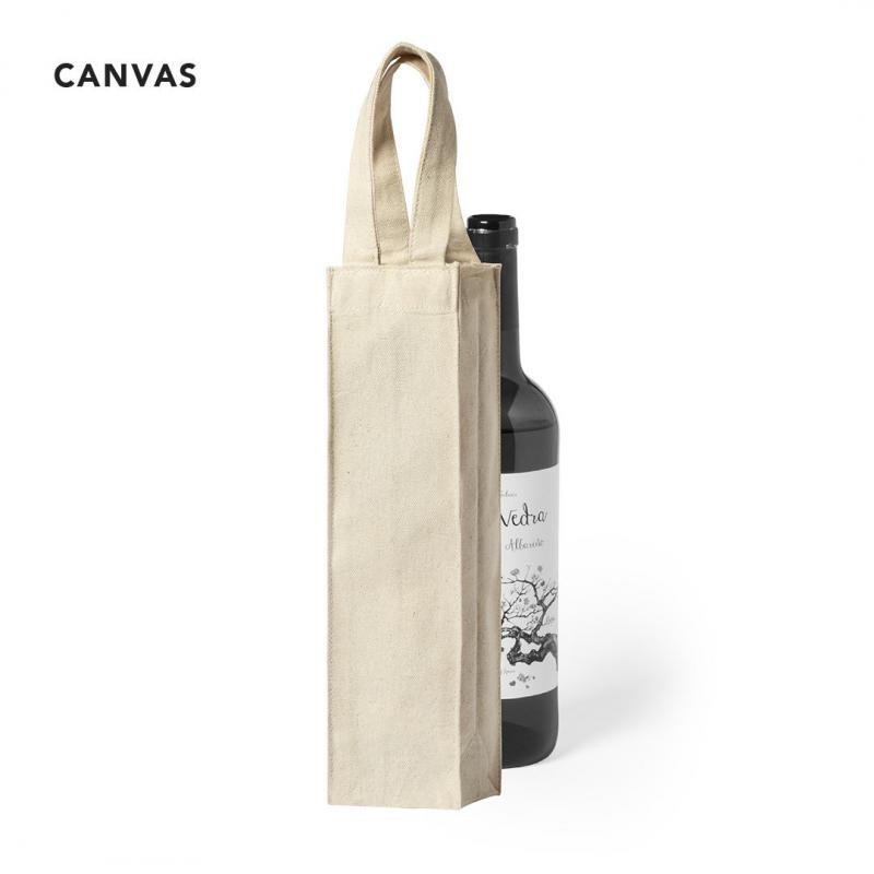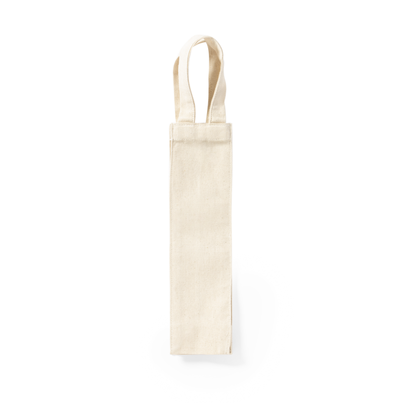 Bolsa de canvas de 220g/m2 para botella de vino de 75cl. En color natural, con resistente acabado cosido y asas reforzadas.