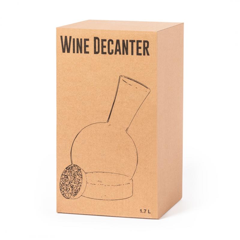 Decantador de línea nature, fabricado en cristal de borosilicato y con base y tapón en corcho natural. De 1,7L de capacidad y presentado en caja individual de diseño eco.