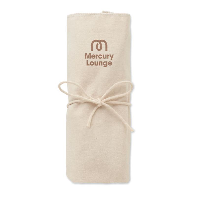 Kit de cóctel en bolsa de algodón 220 gr/m² con cierre de cuerdas. Incluye 5 piezas: una jigger de medición de doble cara (15 y 30 ml), un machacador de madera, un colador de cóctel, un agitador de bebidas y un cuchillo y sacacorchos de camarero.Recipiente :