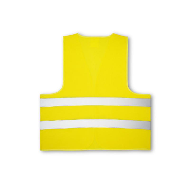 Chaleco de alta visibilidad hecho en poliéster 100%, con certificado EN ISO 20471 clase 2.Incluye 2 bandas horizontales reflectantes y abertura frontal con cierre de velcro.Talla única: 670 x 700 mm