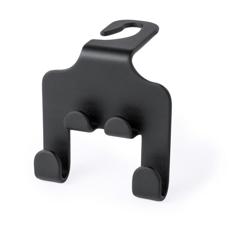 Resistente soporte fabricado en ABS. Fácil instalación mediante el gancho abierto diseñado para colocarse en el reposacabezas, con soporte para dispositivos móviles y dos ganchos adicionales para bolsas. Presentado en bolsa individual.