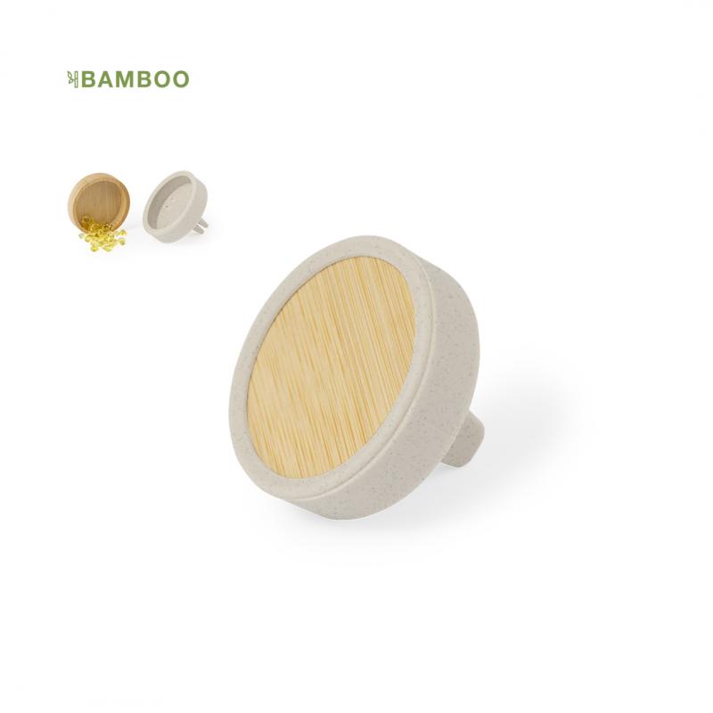 Moderno ambientador para vehículos fabricado en bambú y silicona, con aroma a limón para rejilla de automóvil. Presentado en bolsa de papel kraft. Materiales como el bambú fomentan la utilización de materias primas naturales, reduciendo las emisiones contaminantes. Proviene de una planta de gran resistencia y versatilidad, con crecimiento y regeneración rápidos, siendo una excelente alternativa al uso de madera tradicional.La caña de trigo fomenta la utilización de materias primas naturales, reduciendo así las emisiones contaminantes.