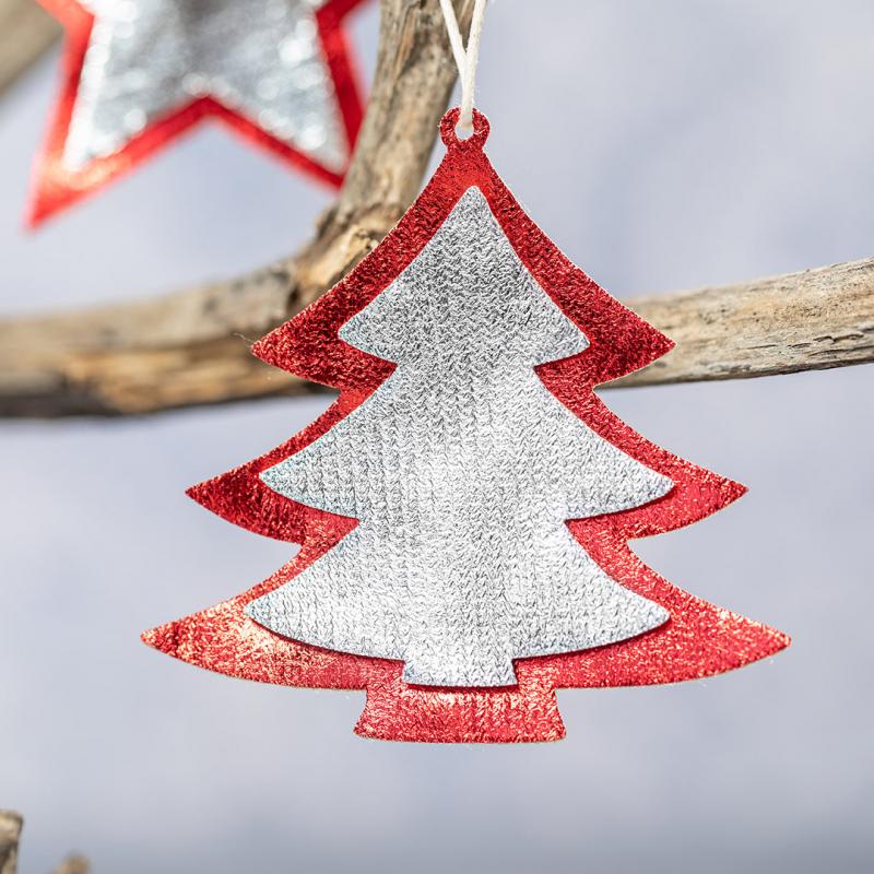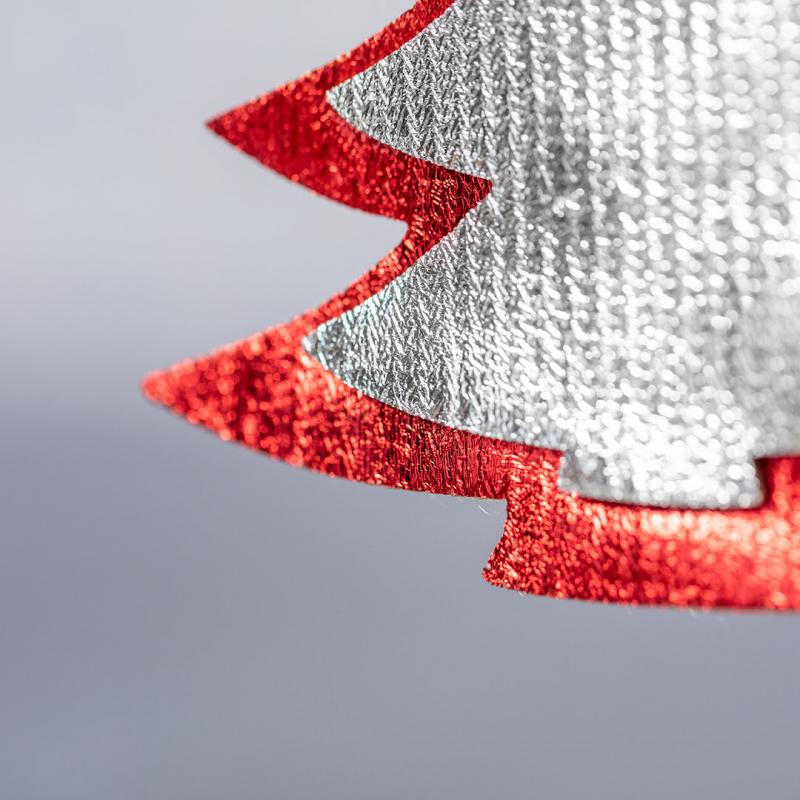 Set de figuras navideñas para colgar en material non-woven. Incluye árbol de navidad y estrella.