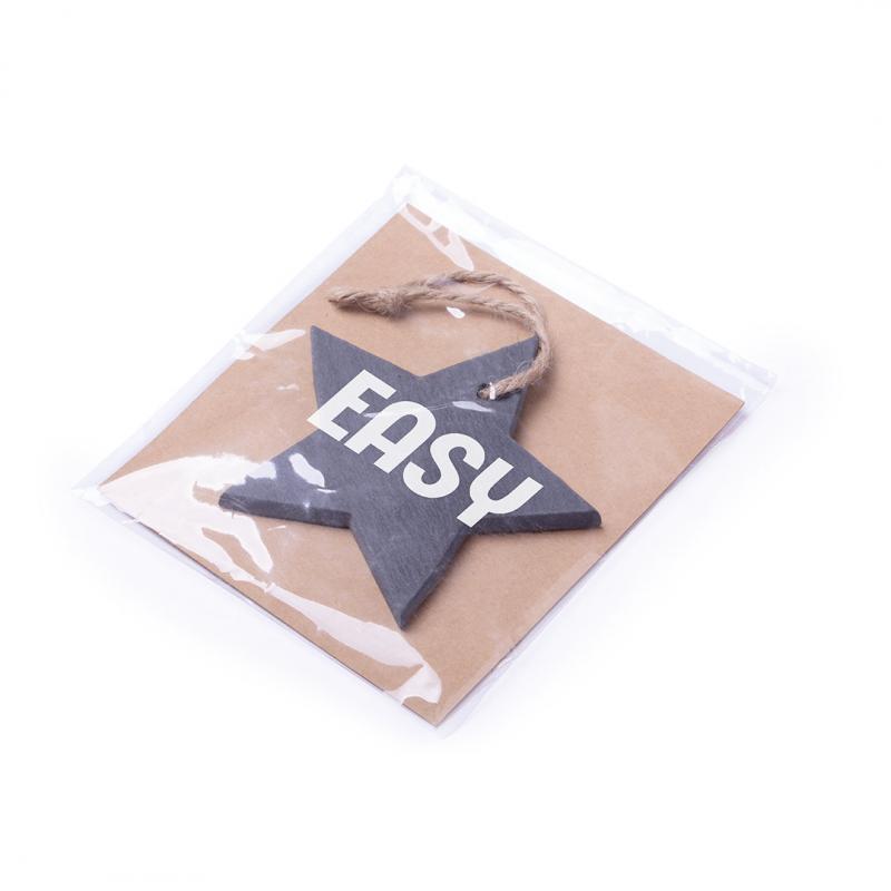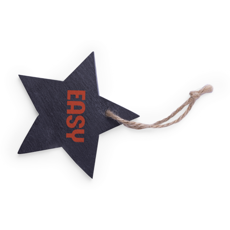 Adorno navideño en pizarra, con lacito para colgar y en elegantes diseños árbol de navidad y estrella.