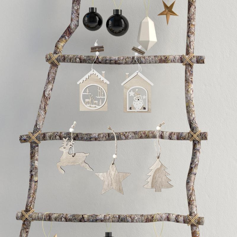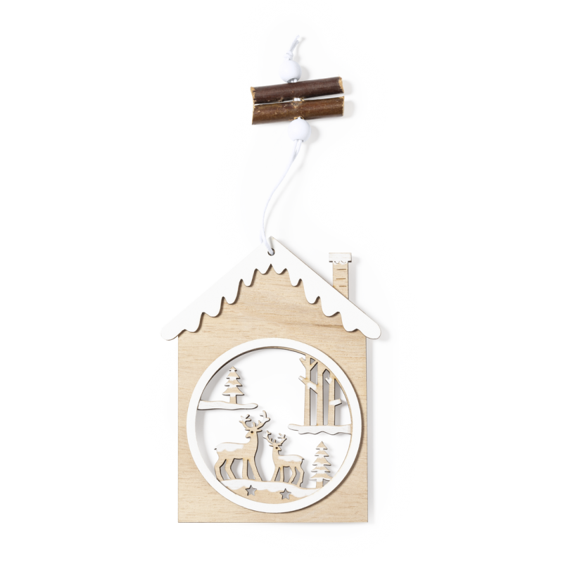 Elegante y moderno adorno navideño en madera natural. Incluye accesorio para colgar y está disponibles en dos diseños: Papa Noel y motivos navideños.