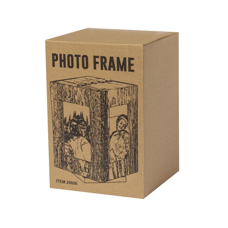 Original portafotos cubo fabricado en madera natural. Su diseño en forma de cubo permite mostrar las 4 fotos más destacadas del álbum y, además, cuenta con una base giratoria 360º. Ideal para fotos de hasta 13,5x9 cm. Presentado en caja individual de diseño kraft.
