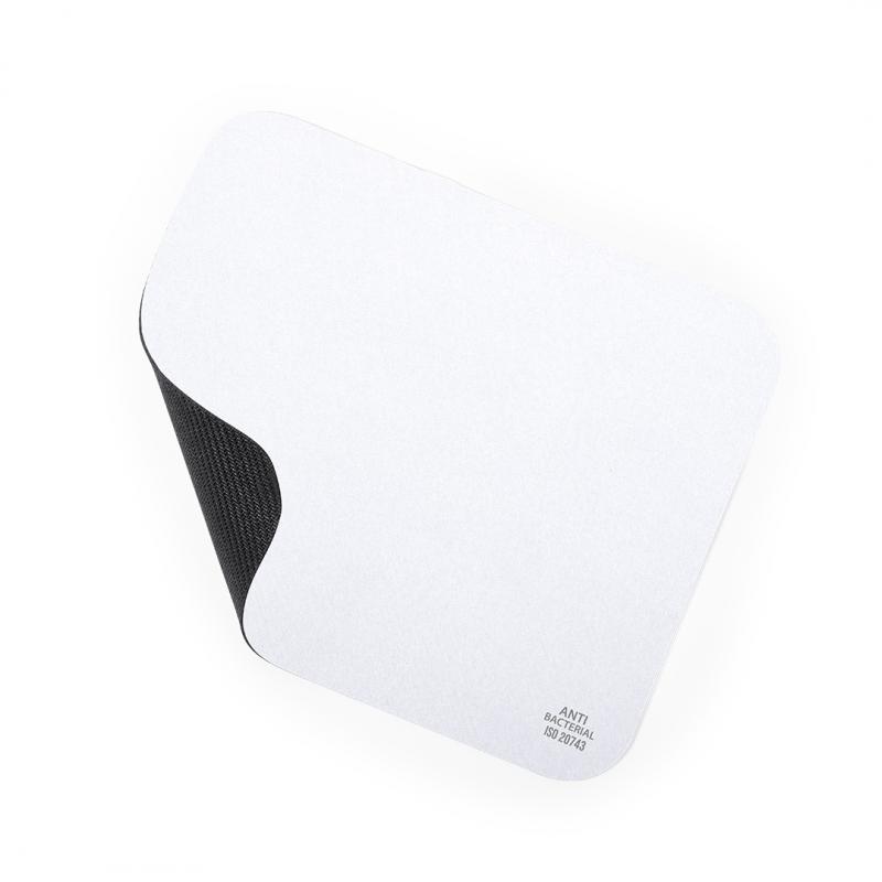 Alfombrilla antibacteriana de diseño rectangular en material poliéster de acabado blanco, con base antideslizante en silicona de 1,5mm de grosor y amplia superficie de impresión, especialmente indicada para impresión en sublimación. Los productos con tratamientos antibacterianos son capaces de reducir drásticamente las cargas bacterianas presentes en las superficies de los materiales, gracias a la incorporación de agentes microbianos permanentes estáticos, con alta efectividad para inhibir y prevenir la contaminación bacteriana. Artículo de acuerdo al estándar ISO 20743, que determina la actividad antibacteriana en productos textiles, lo que permite conocer la efectividad de inhibición microbiana que tienen los aditivos sobre los objetos tratados mediante una evaluación cuantitativa.