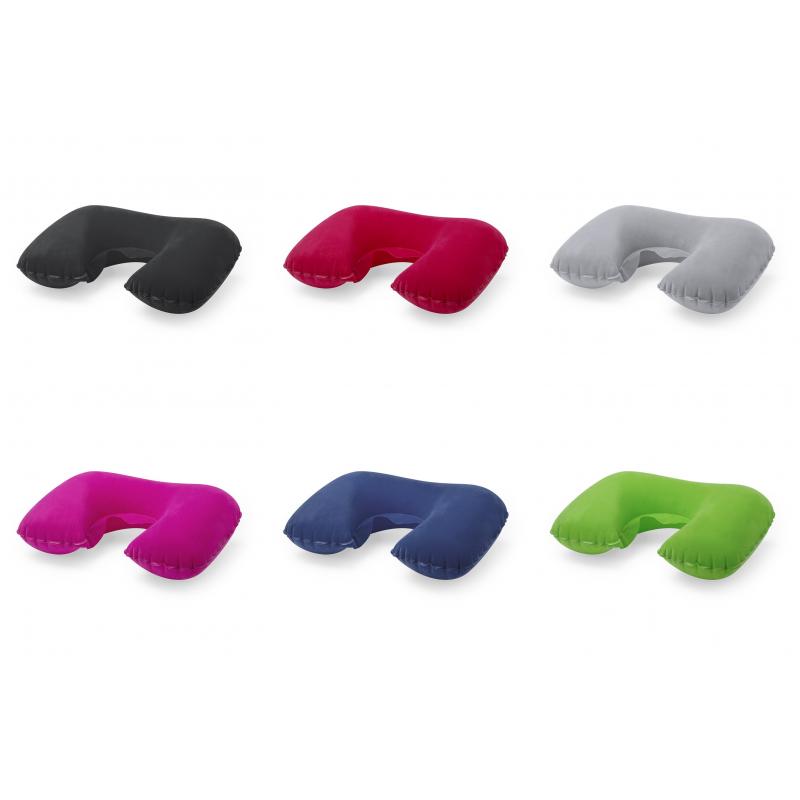 Almohadilla inflable para cuello de suave antelina en variada gama de vivos colores.