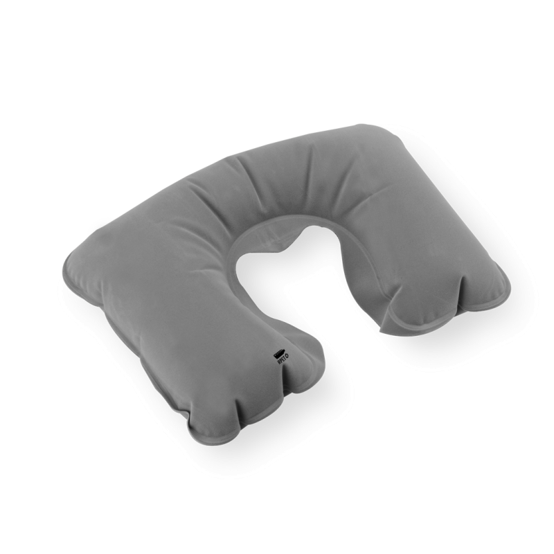 Almohadilla inflable para cuello de suave y confortable ajuste, disponible en variada gama de colores. Fabricada en antelina RPET y presentada en funda individual a juego de RPET. Logotipo RPET en almohadilla y funda.El material RPET se elabora a partir de plástico reciclado, para así fomentar la reutilización de residuos plásticos y ayudar a la sostenibilidad del planeta.