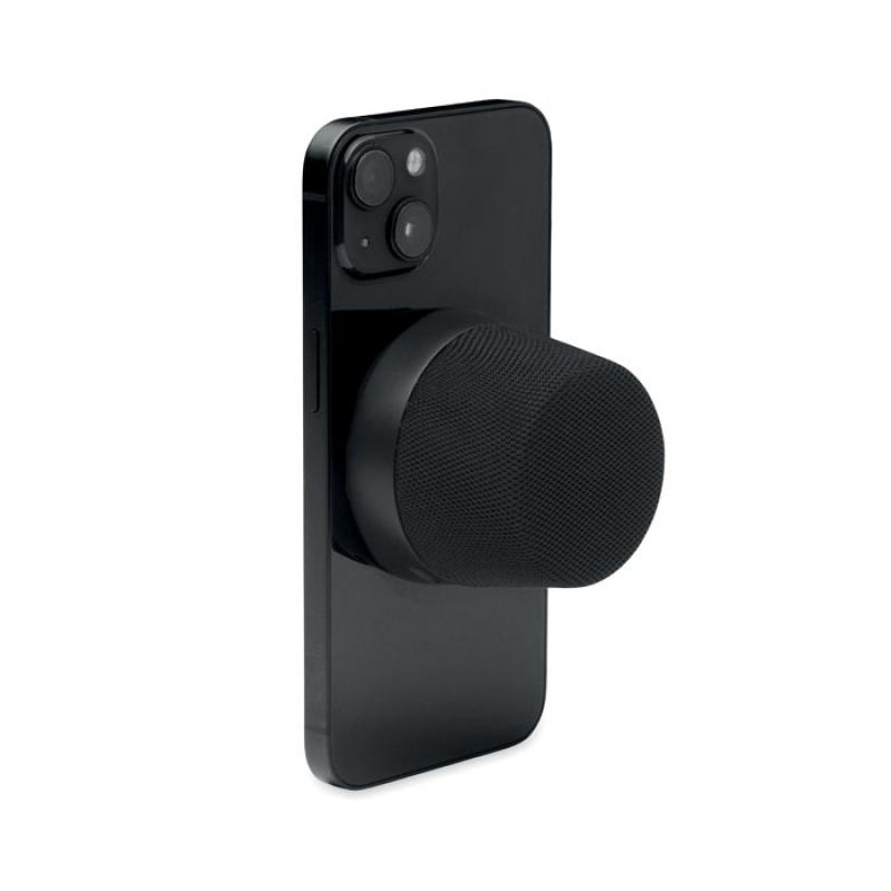 Altavoz inalámbrico 4.2 con carcasa de ABS, tejido de poliéster RPET y asa. El imán de la parte trasera permite utilizarlo como soporte. Batería recargable Li-ION de 300 mAh incluida. Datos de salida: 3 W, 4 ohm y 5 V. Tiempo de reproducción aprox. 2 horasRecipiente :