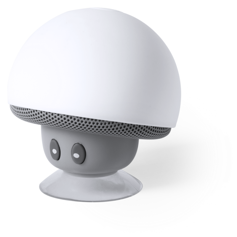 Altavoz de original diseño seta con función soporte para móvil. Conectividad Bluetooth® 5.0, con 3W de potencia y función manos libres. Cuerpo con suave acabado de tacto goma y ventosa de fijación para función soporte. Cable micro USB incluido y presentado en atractiva caja de diseño.