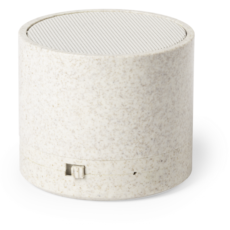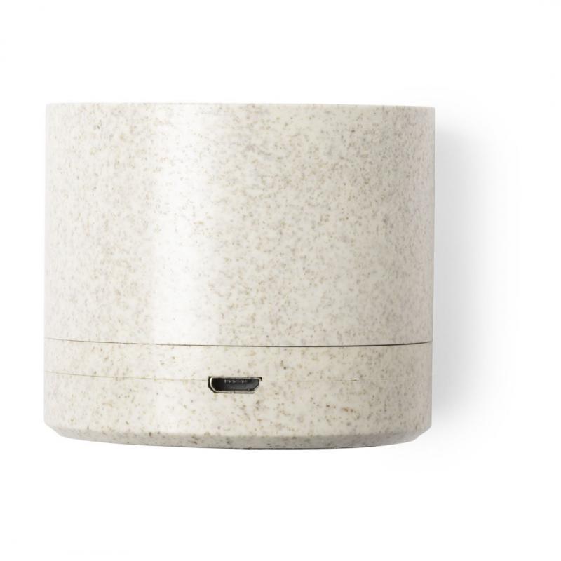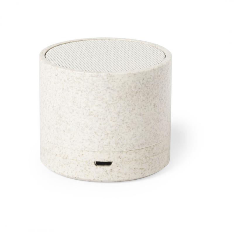Compacto altavoz de línea nature y conexión Bluetooth® 5.0. Carcasa en caña de trigo, para así fomentar la utilización de materias primas naturales y reducir las emisiones contaminantes. 3W de potencia, compatible con iOS y Android. Incluye cable de carga micro USB y soportes de goma antideslizantes en la base. Presentado en atractiva caja de diseño eco.