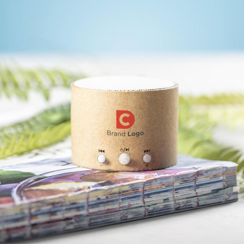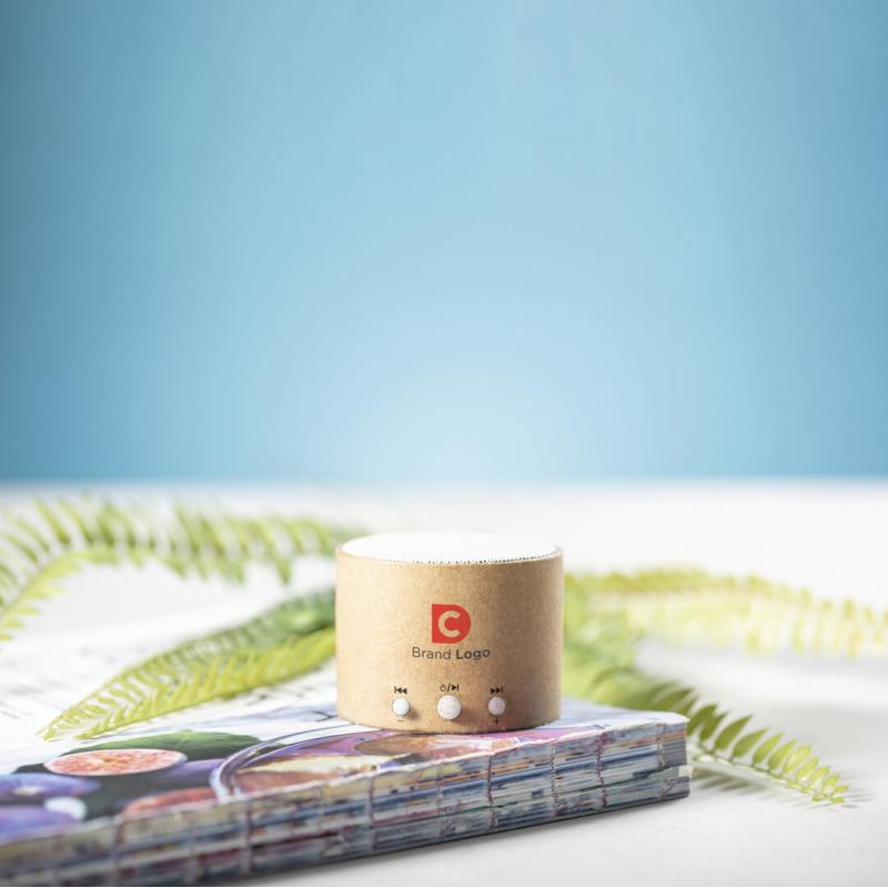 Compacto altavoz de línea nature y conexión Bluetooth® 5.0. Frabricado en cartón reciclado, contribuyendo a la conservación de los bosques y reduciendo considerablemente la huella de carbono, con botones de control en caña de trigo. Ofrece 3W de potencia, compatible con iOS y Android. Incluye cable de carga micro USB. Presentado en atractiva caja de diseño eco, con manual de instrucciones en español e inglés.