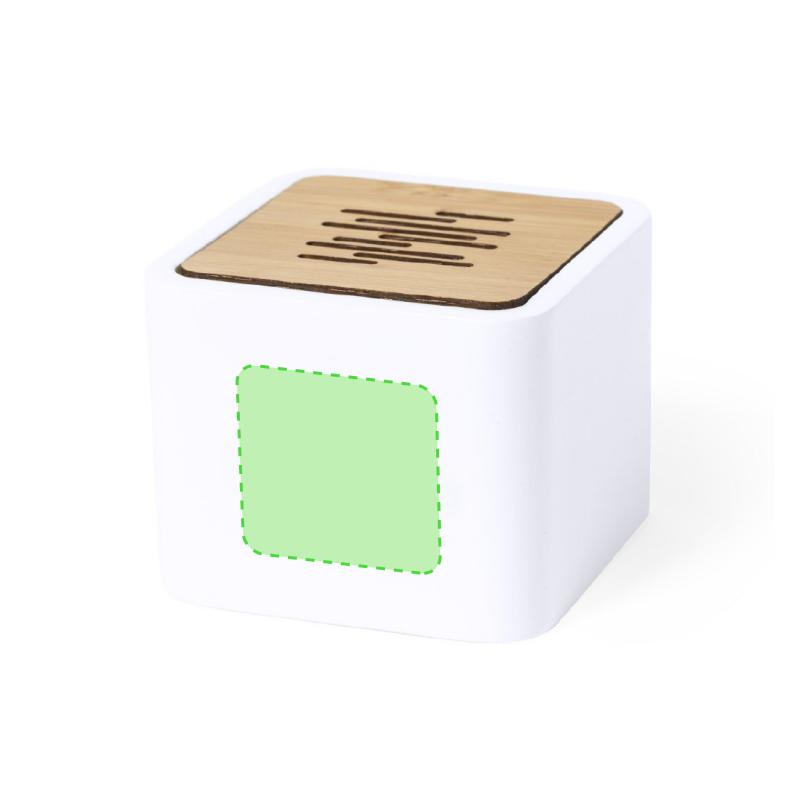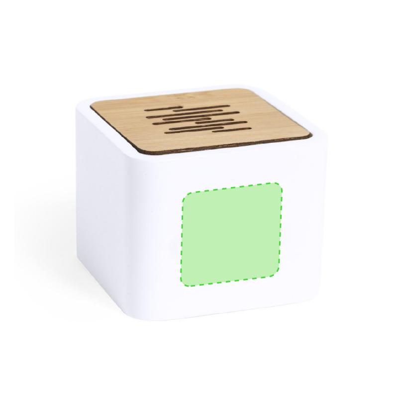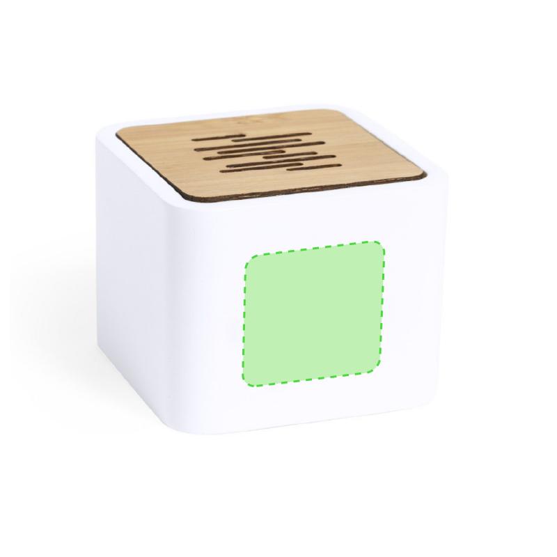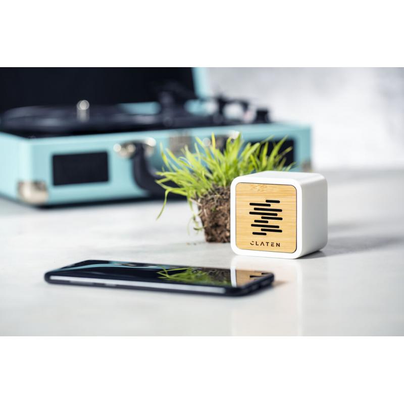 Altavoz de línea nature y conexión Bluetooth® 5.0. Fabricado en combinación de bambú y PLA -Ácido PoliLáctico-, que se obtiene a partir de recursos 100% naturales como el almidón de maíz, la yuca o la caña de azúcar, pudiendo convertirse en 100% compostable al final de su ciclo de vida útil. 3W de potencia, con función manos libres y recargable mediante cable USB -incluido-. Presentado en atractiva caja de diseño eco. Distintivo PLA sobre el artículo.
