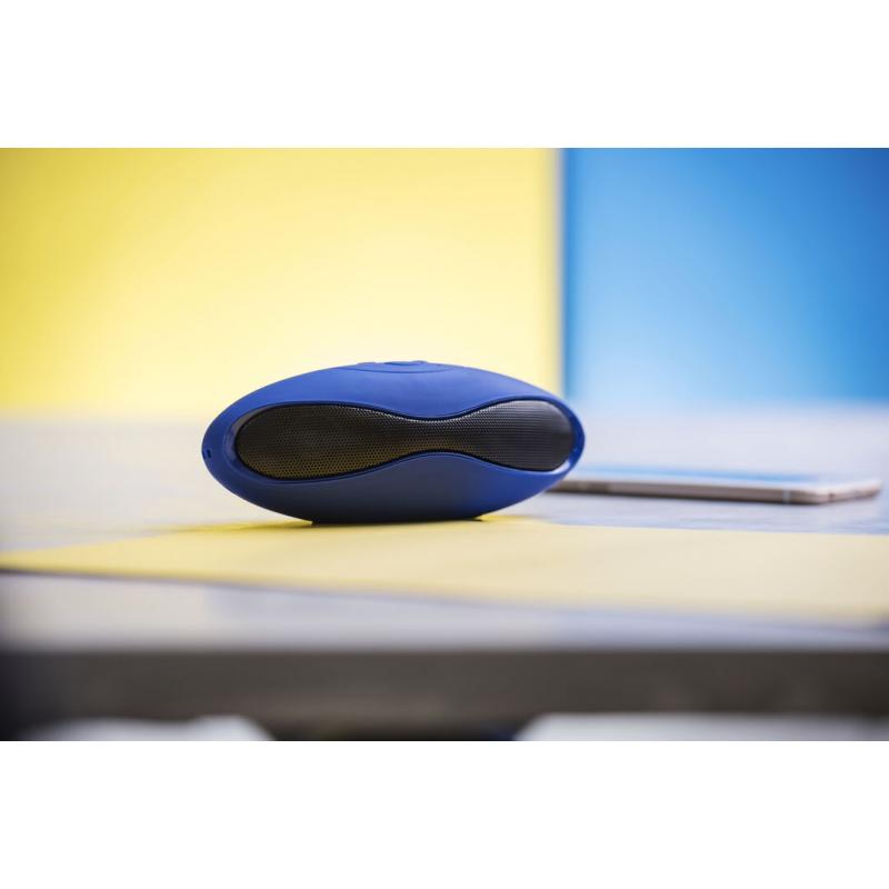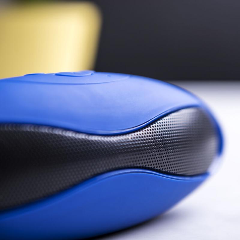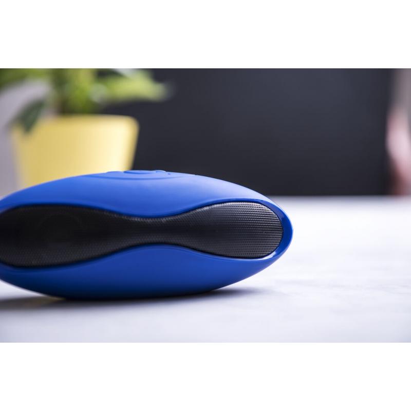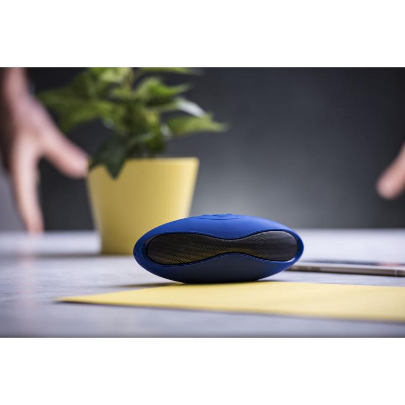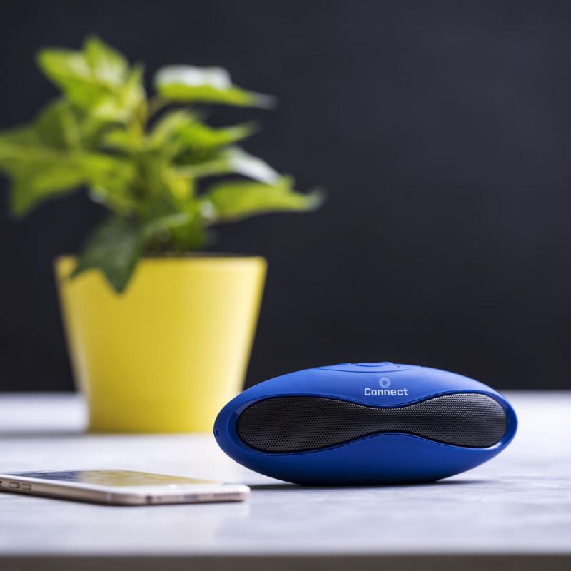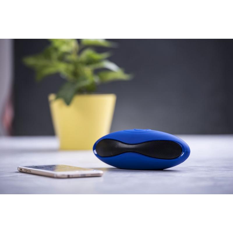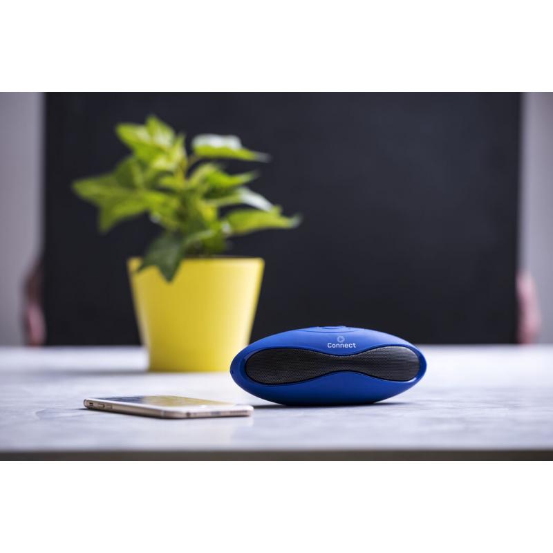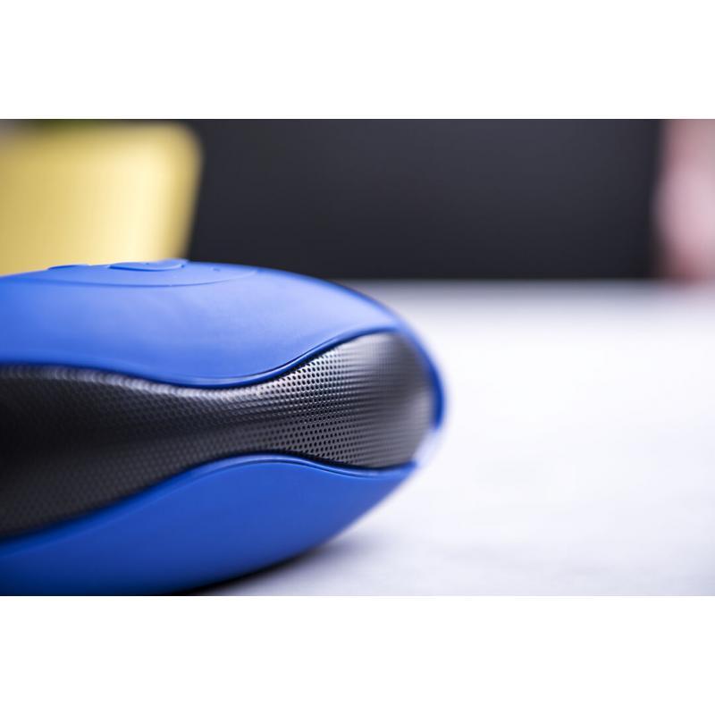 Altavoz de conexión Bluetooth®. De atrevido diseño bicolor y suave acabado, con conexión Bluetooth® 3.0, ofrece 3W de potencia, tiene función de manos libres, una ranura para tarjetas mini SD de hasta 32 GB de capacidad, función radio FM, entrada auxiliar de línea mediante conexión jack de 3,5mm y soportes de goma antideslizantes en la base. Compatible con iOS y Android, incluye cable de carga mini USB, cable auxiliar jack de 3,5mm y viene presentado en atractiva caja de diseño.