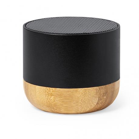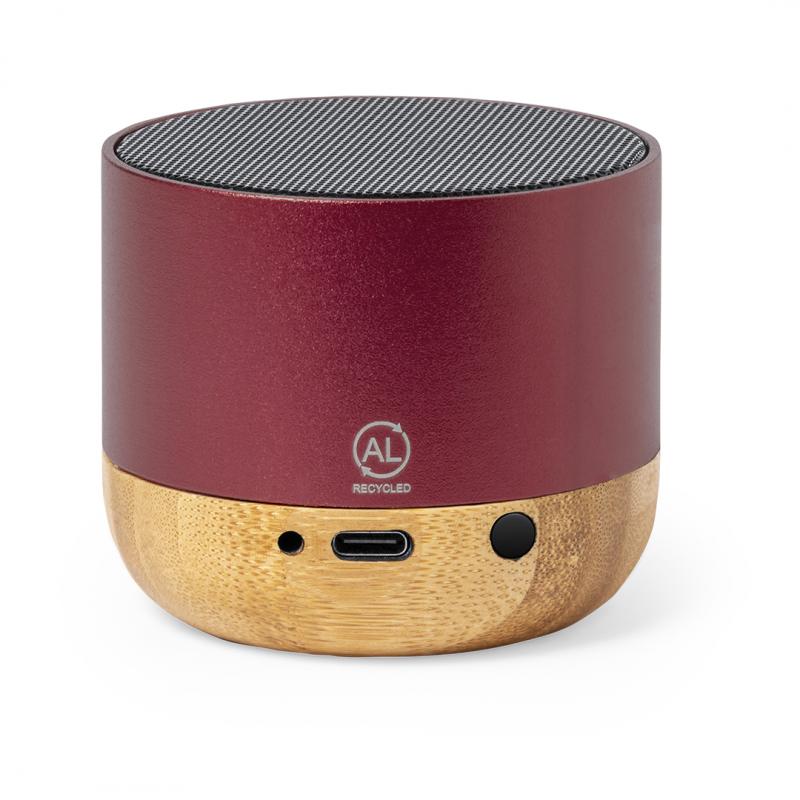 Altavoz eco fabricado en combinación de carcasa de Aluminio Reciclado y base de bambú. Con conexión Bluetooth® y 3W de potencia. Batería de litio de 300mAh y logotipo Aluminio Reciclado. Presentado en caja individual de diseño kraft, con manual de instrucciones disponible en español e inglés.El Aluminio Reciclado es un material con posibilidades de reciclaje casi infinitas, sin perder sus propiedades originales y consumiendo menos energía en este proceso.Certificación GRS (Global Recycled Standard / Estándar de Reciclaje Global), que garantiza el origen reciclado del material usado para fabricar el producto.