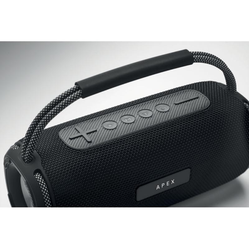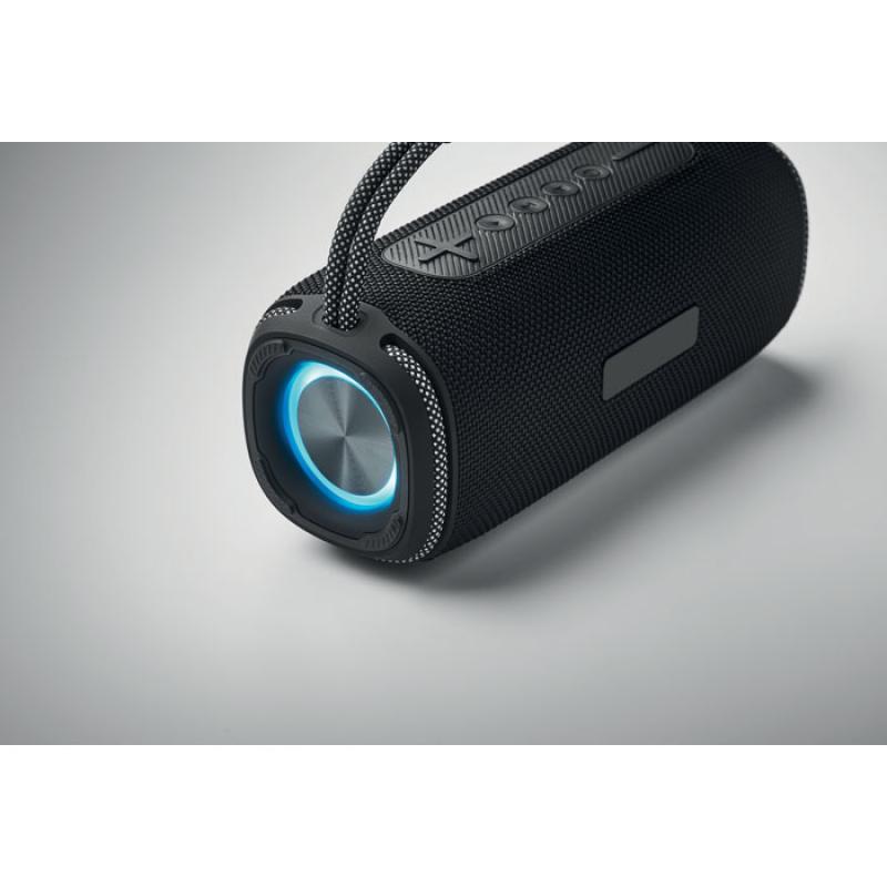 Altavoz portátil inalámbrico estéreo 2x10 W con batería recargable de 2400 mAh. Incluye puertos AUX, USB y TF. Tiempo de reproducción aprox. 5 horas.Recipiente :