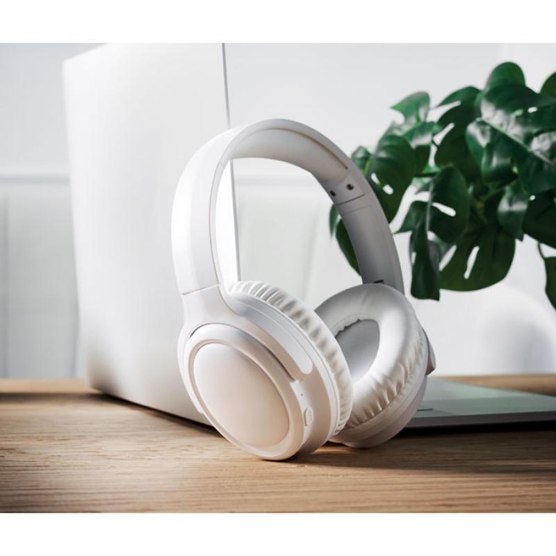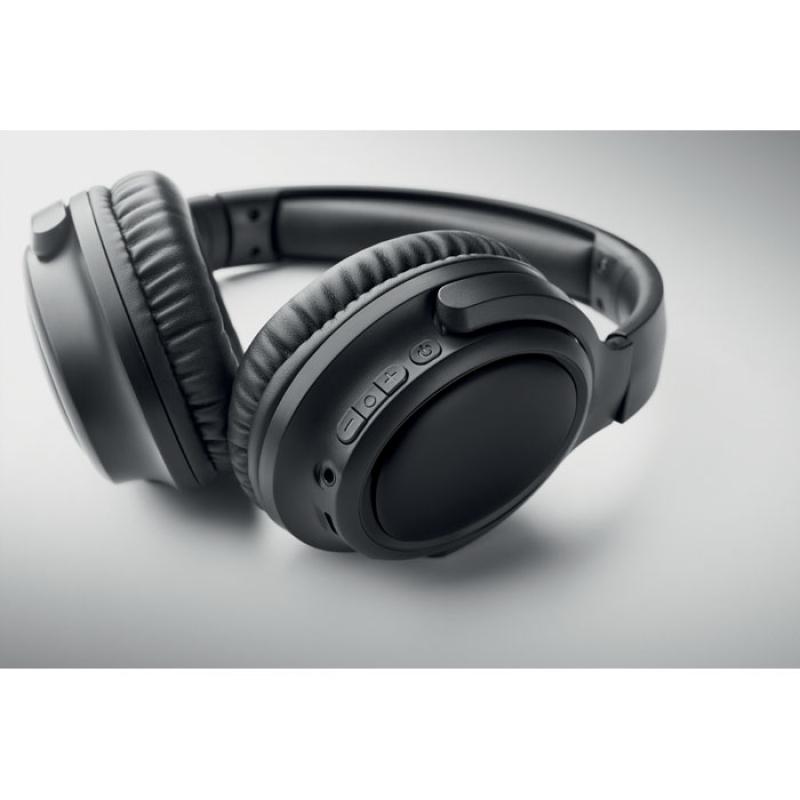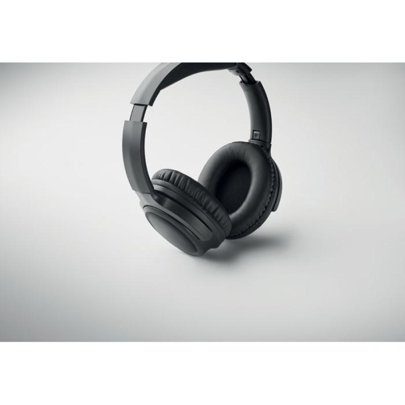 Auriculares inalámbricos plegables con cancelación activa del ruido (ANC) 5.3 en ABS. Función manos libres y micrófono. Tiempo de reproducción aprox 17 h. Incluye cable de carga micro USB. Batería recargable Li-ION de 200 mAh. Alcance: 10 m.Recipiente :