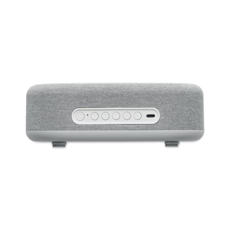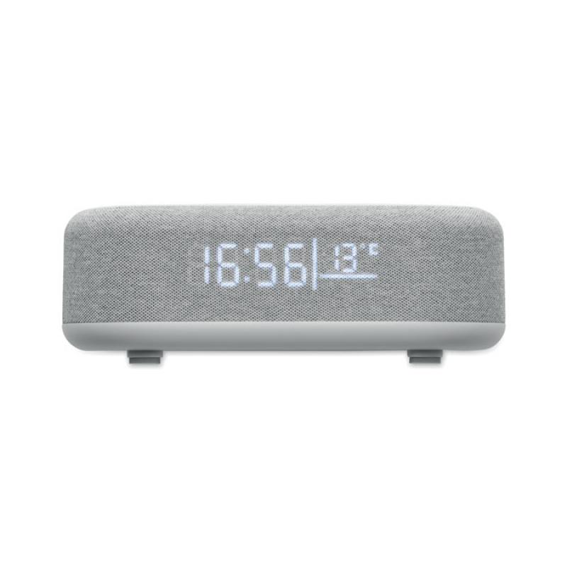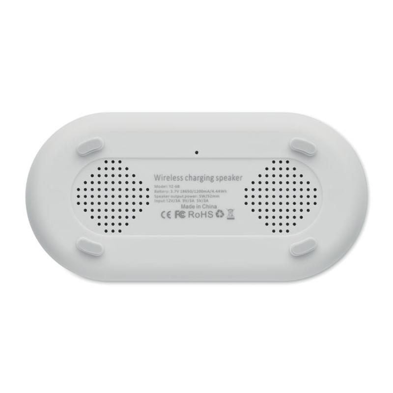 Altavoz 4 en 1 de carga inalámbrica de 15 W y 5 W en ABS con estación meteorológica y luz ambiental. Reloj despertador. Visualización de la hora y la temperatura. Batería Li-Iin integrada: 1200 mAh. Tiempo de reproducción aprox. 7 horas.Recipiente :