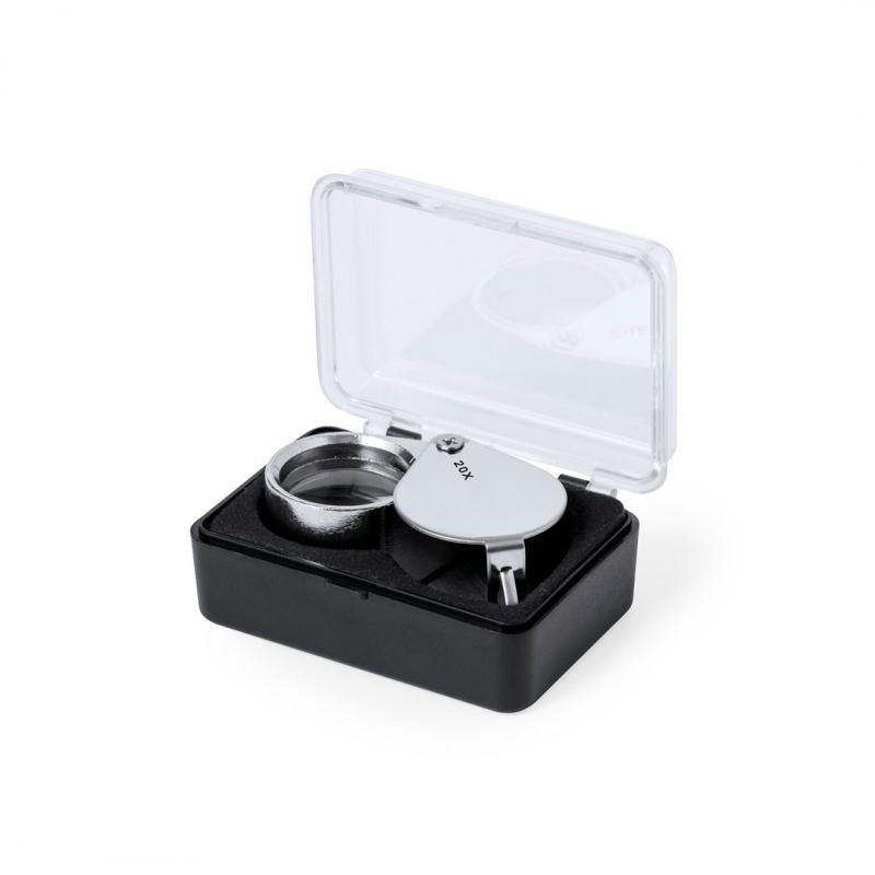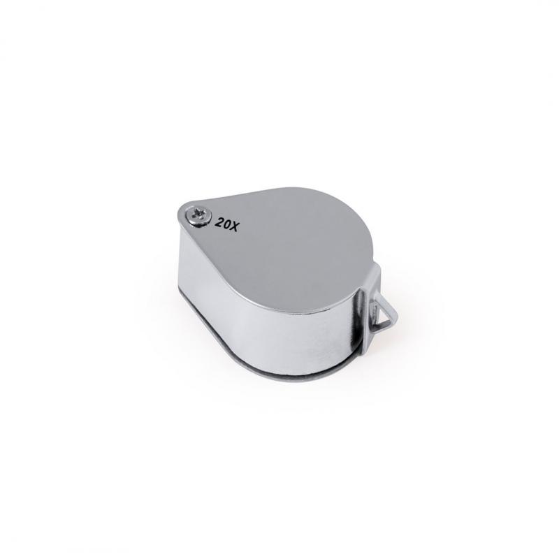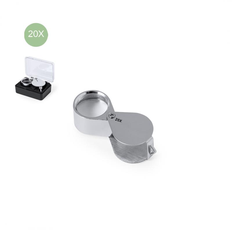 Lupa plegable con aumento 20x fabricada en resistente metal. Gran potencia de aumento para obtener una visión muy cercana de los detalles más pequeños, con ampliación sin distorsión. Ideal para inspeccionar objetos de tamaño reducido, textos, etc. Además, tiene un accesorio para colgar y viene dentro de un estuche con interior acolchado para una mayor protección. Presentada en caja de cartón negra.