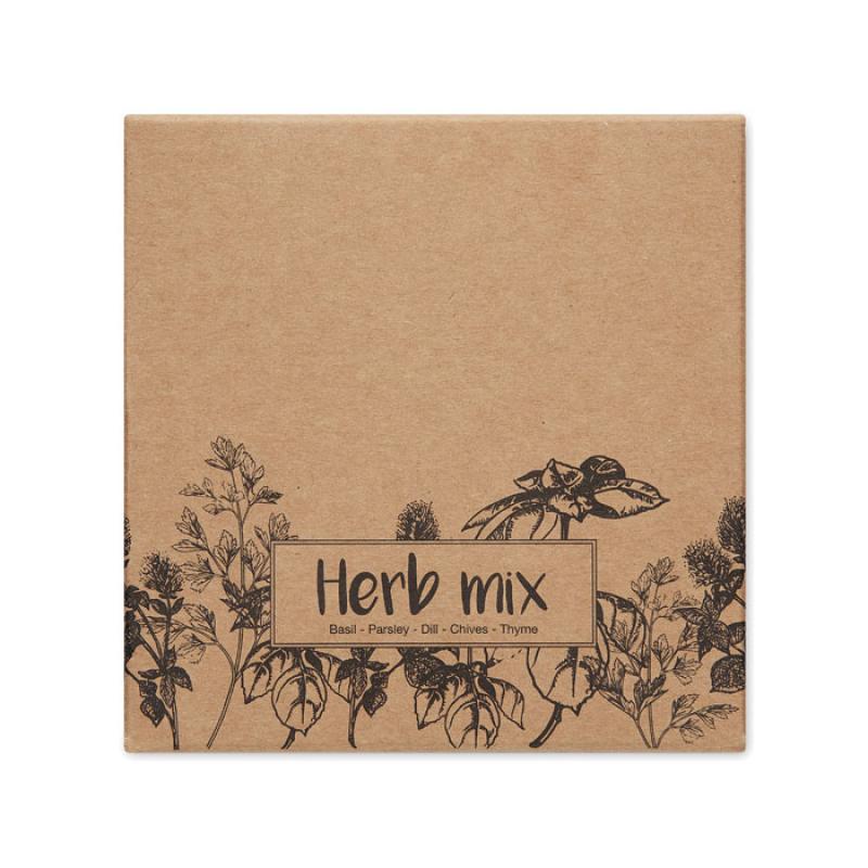 Cinta de semillas de hierbas con 3 metros en el reverso. Semillas de albahaca, perejil, eneldo, cebollino y tomillo. Fabricado en la UE.Recipiente :