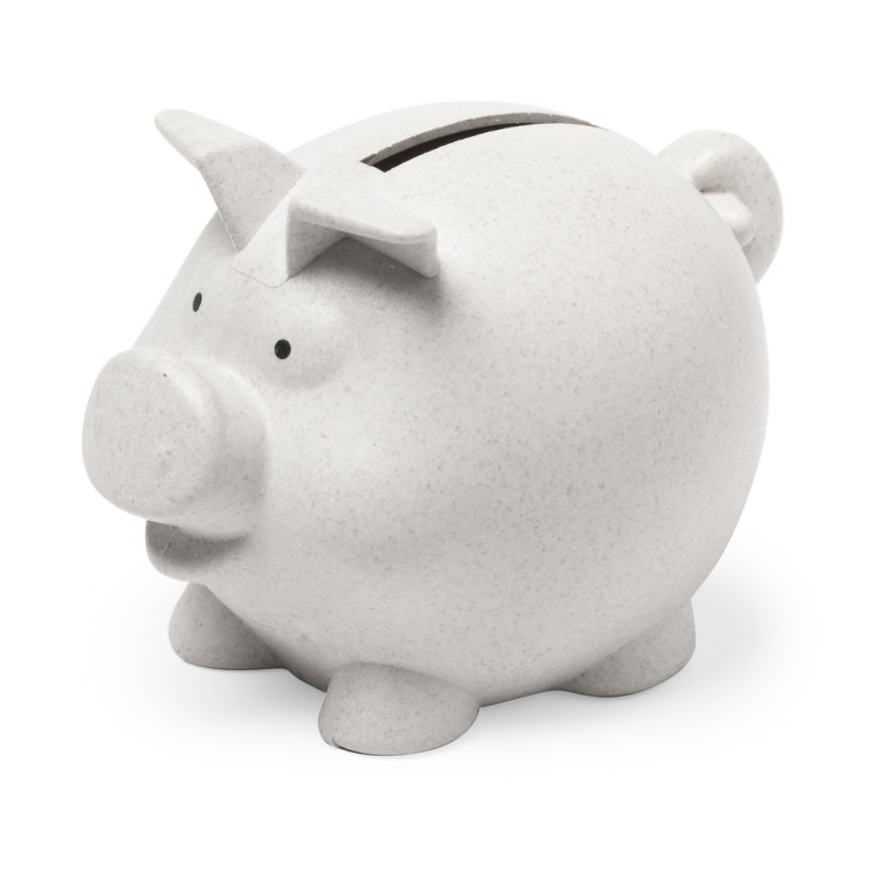 Hucha de línea nature con forma de cerdito, para ahorrar a la vez que se cuida del medio ambiente.