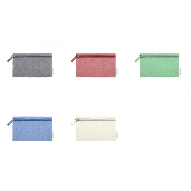 Estuche de línea nature elaborado en algodón reciclado. Compartimento principal de cierre de cremallera y tirador juego, con distintivo algodón reciclado en etiqueta.