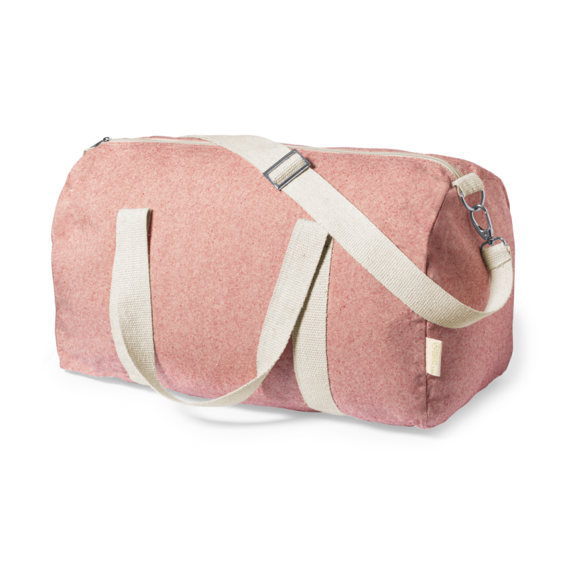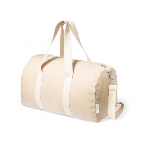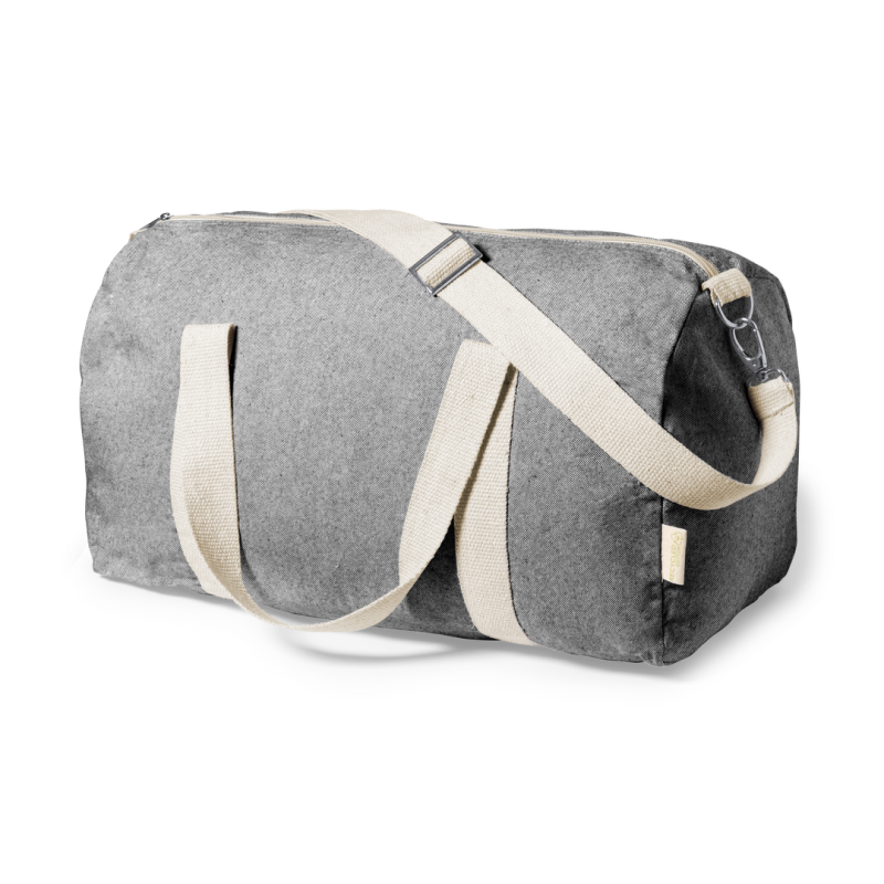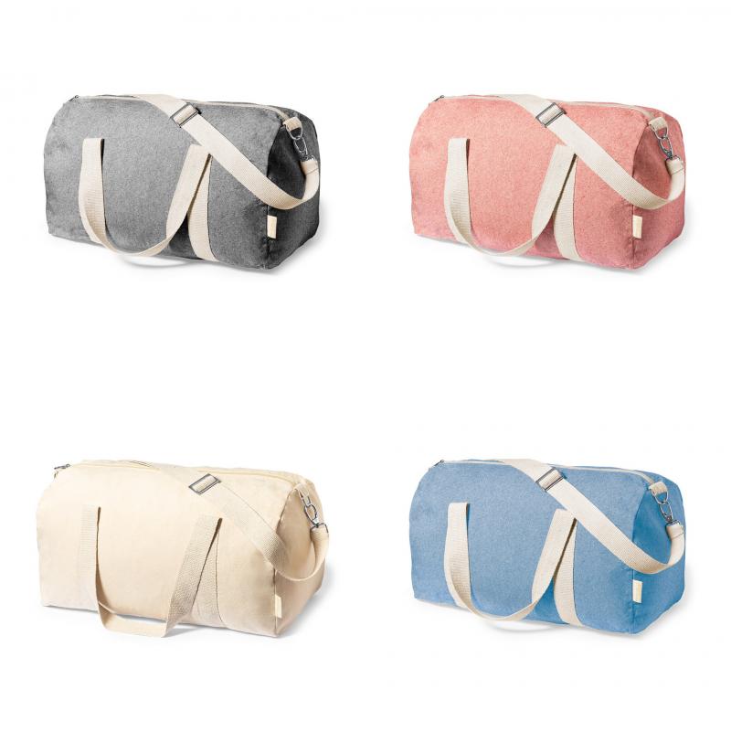 Práctico bolso de línea nature fabricado en algodón 100% reciclado GRS de 275g/m2. Con prácticas y resistentes asas en color natural alrededor del bolso. Compartimento principal con cierre de cremallera y cinta para hombro ajustable con cierre de mosquetón. Disponible en variada gama de colores y con distintivo algodón reciclado en etiqueta exterior. Disponible certificación GRS (Global Recycled Standard / Estándar de Reciclaje Global), que garantiza el origen reciclado del material usado para fabricar el producto.