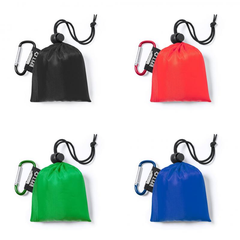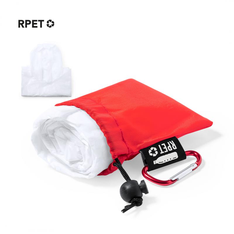 Poncho para adulto en material LDPE. En medidas 102x127cm y presentado en funda de poliéster RPET, elaborado a partir de plástico reciclado, para así fomentar la reutilización de residuos plásticos y ayudar a la sostenibilidad del planeta. Bolsa con mosquetón a juego para fácil transporte y cierre ajustable, disponible en variada gama de colores. Con distintivo RPET en etiqueta exterior.