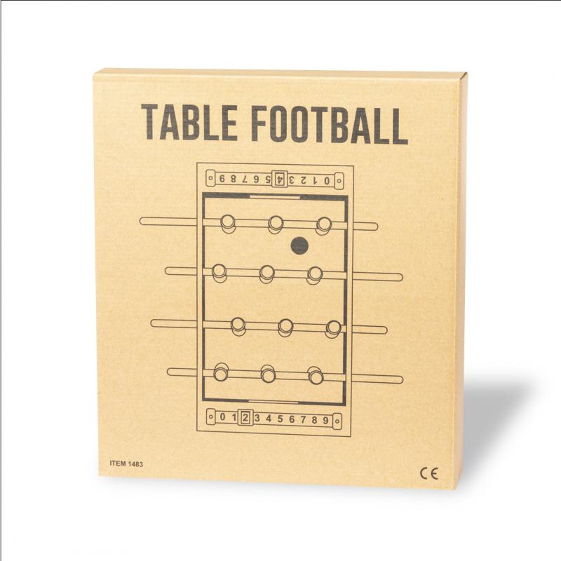 Minifutbolín fabricado en resistente madera. Incluye 2 bolas y marcadores en cana de trigo, para así fomentar la utilización de materias primas naturales y reducir las emisiones contaminantes. Pon a prueba tu habilidad con este divertido y adictivo juego. Presentado en atractiva caja individual de diseño y con acabado kraft.