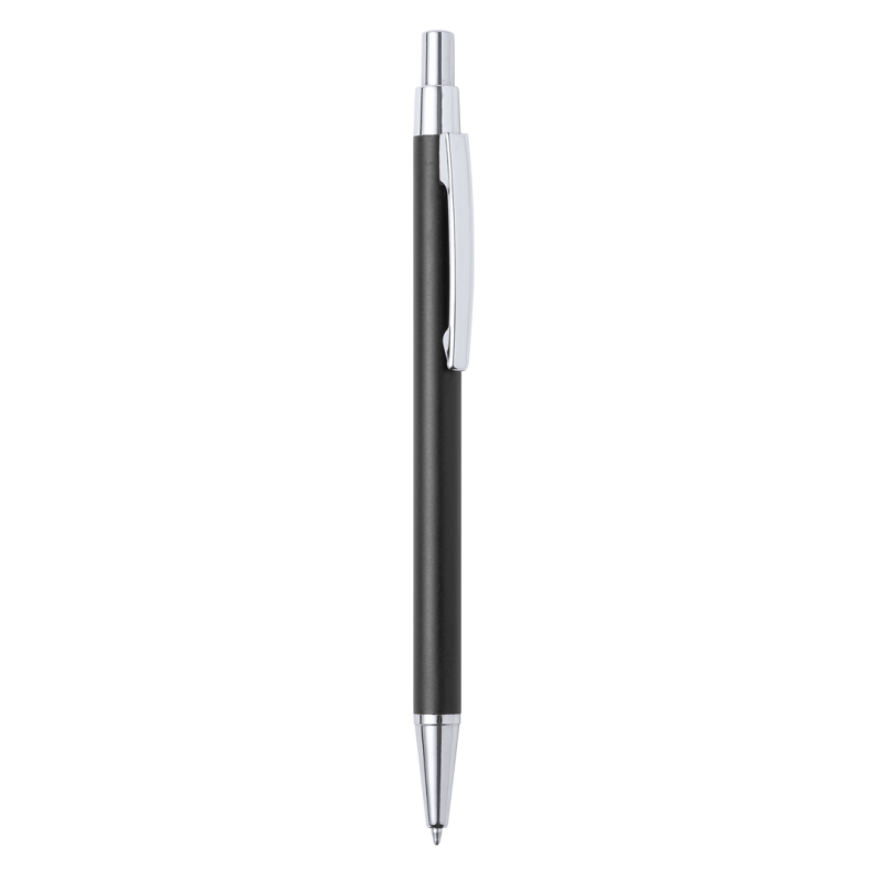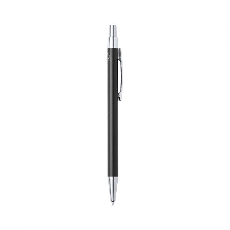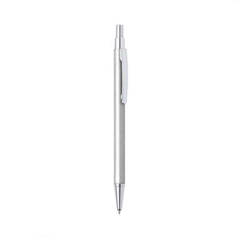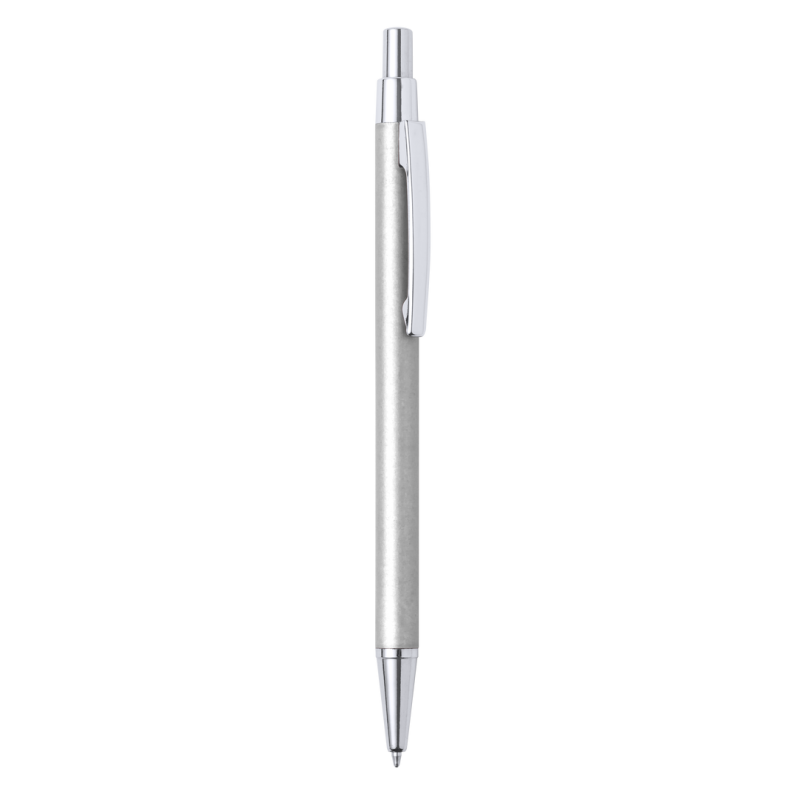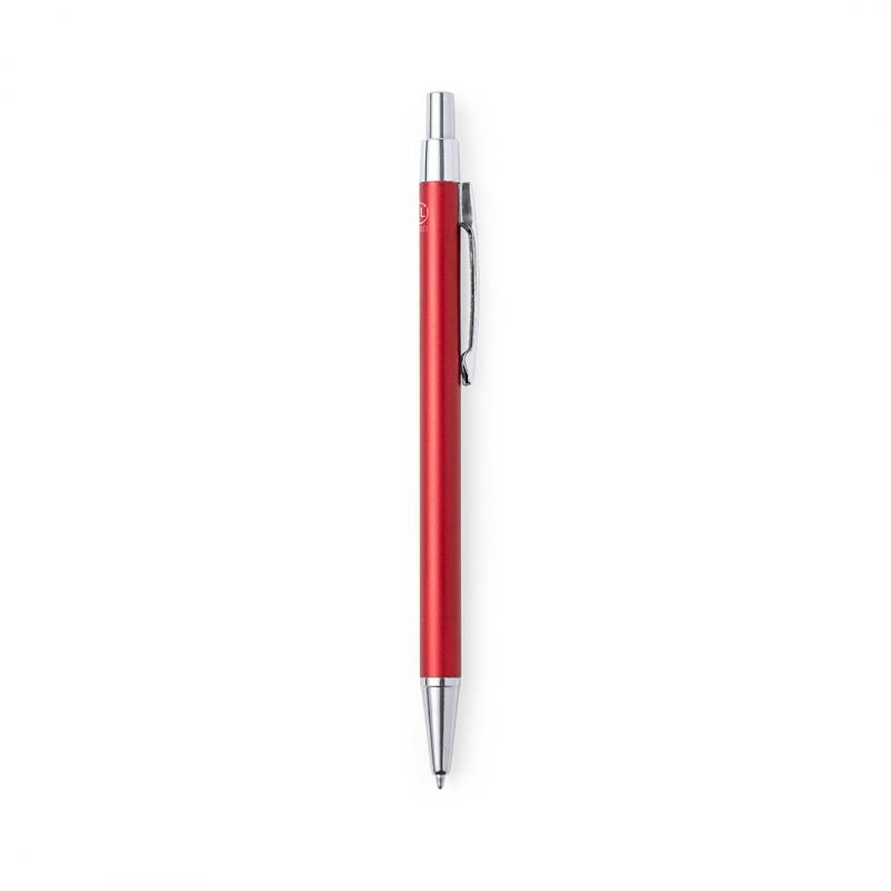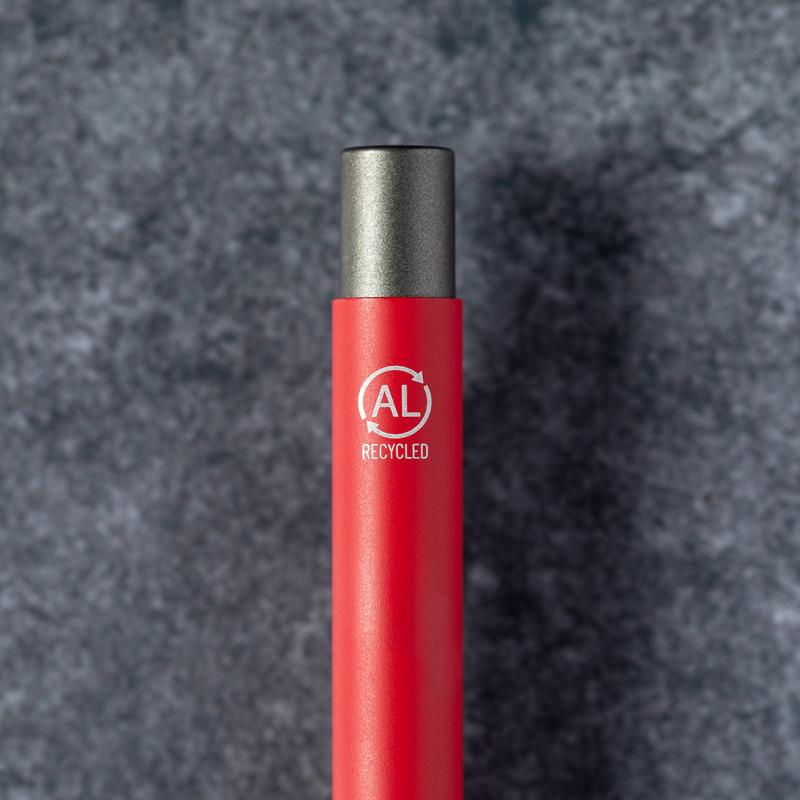Bolígrafo eco-friendly fabricado en aluminio reciclado, cuyo origen se encuentra en la reutilización casi infinita de uno de los materiales con mayor potencial de reciclabilidad sin perder sus propiedades. Esta característica lo convierte en un material eco-friendly de origen reciclado, fácilmente reciclable y de cuyos procesos de tratamiento y desechos para la obtención del material se pueden obtener nuevos recursos reutilizables, consumiendo menos energía en su fabricación, entre otros factores de sostenibilidad. De mecanismo pulsador, con cuerpo disponible en variada gama de colores metalizados y accesorios en cromado. Con clip metálico, tinta azul y distintivo aluminio reciclado en la parte superior del bolígrafo. Certificación GRS (Global Recycled Standard / Estándar de Reciclaje Global), que garantiza el origen reciclado del material usado para fabricar el producto.