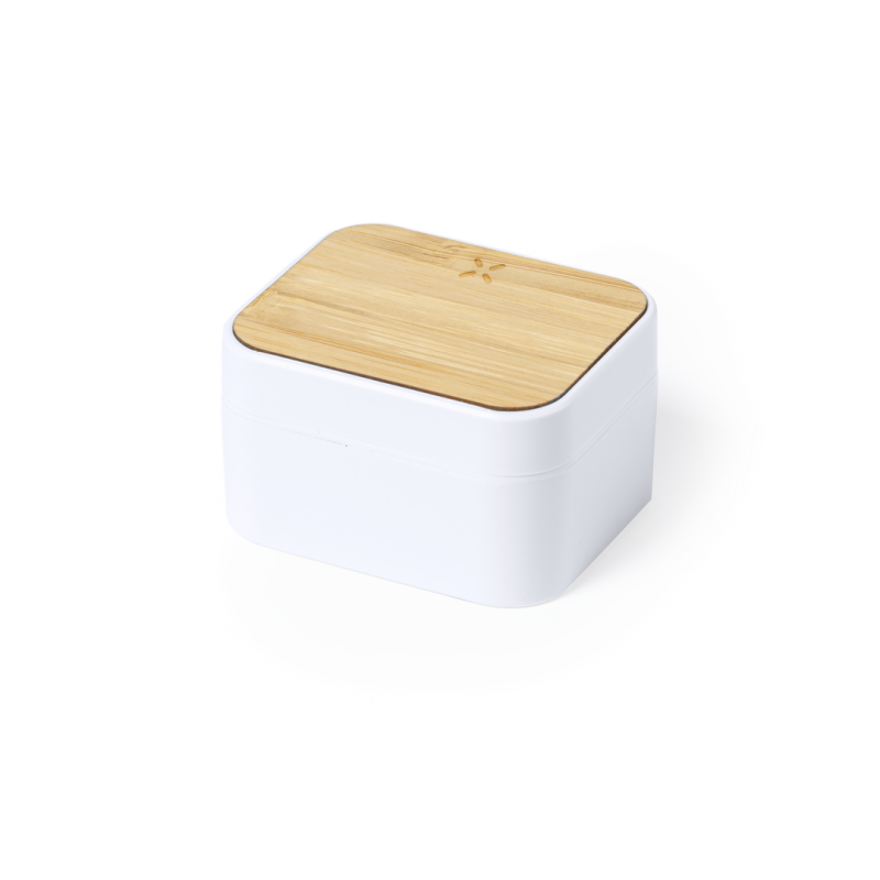 Auriculares intraurales de línea nature. Fabricados en resistente ABS con detalles en bambú en auriculares y base. Conexión Bluetooth® 5.0 y función manos libres, con botón de control táctil en el auricular. Incluye cargador inalámbrico 10W integrado en la tapa de bambú de la base de caga. Recargables por USB, con cable Tipo C incluido. Presentados en caja individual de diseño eco en cartón kraft.
