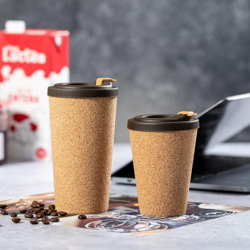 Vaso térmico de línea nature. De 500 ml de capacidad, con cuerpo en corcho natural, e interior y tapa en resistente PP. Dosificador en tapa incluido y distintivo Made In Europe.