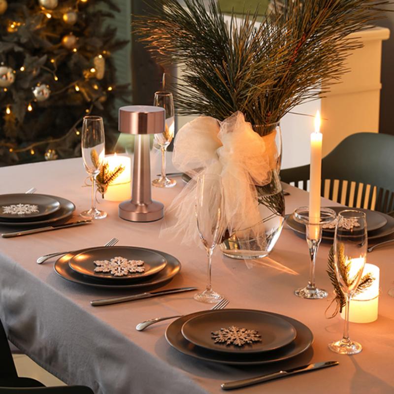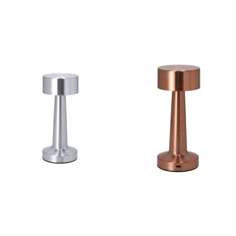 Lámpara de diseño en acabado oro rosa. Incluye 3 modos de luz (blanca, neutra y cálida,NULL) y sistema de regulación de intensidad de luz táctil. Equipada con 24 LEDs. Con botón encendido/apagado.