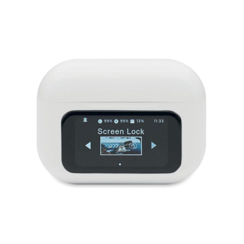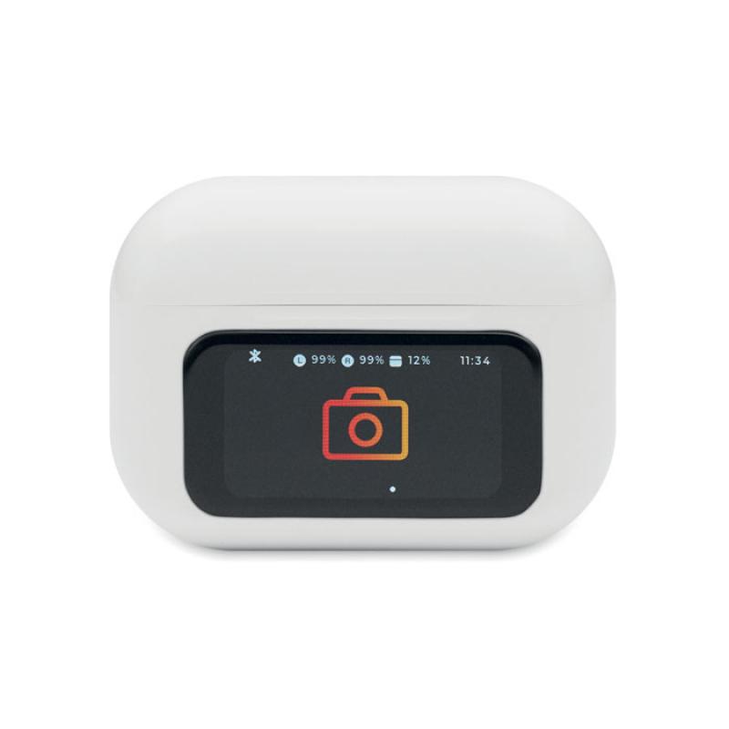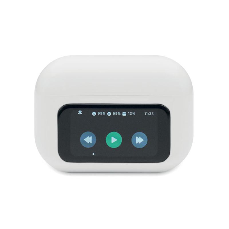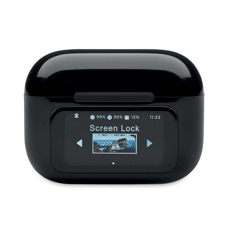 Auriculares estéreo inalámbricos True Wireless Stereo (TWS) 5.0 de ABS (30 mAh) con ANC/ENC y micrófono y base de carga de 230 mAh. Pantalla táctil para control y display.Recipiente :