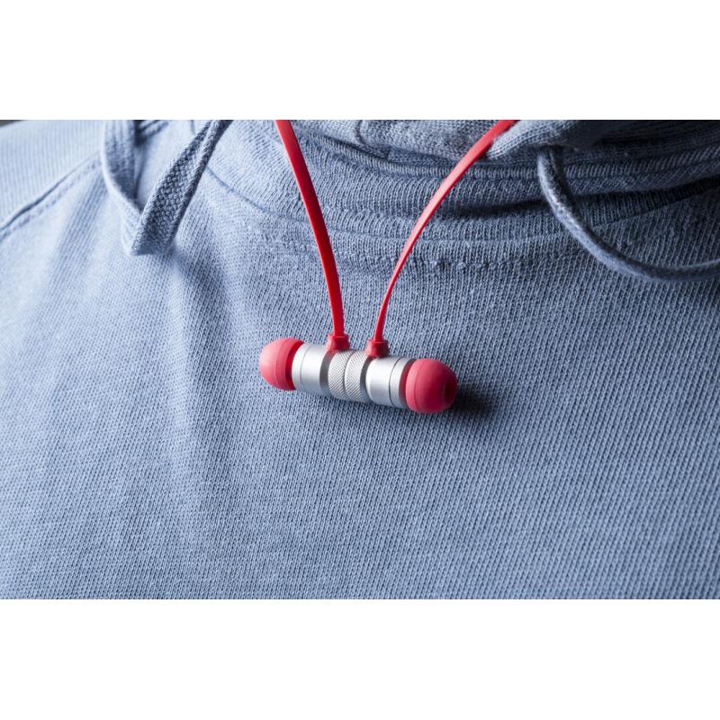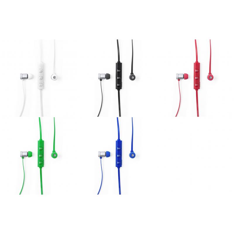 Auriculares intraurales con conexión Bluetooth®, suave cuerpo de aluminio e imanes de sujeción. Disponibles en variada gama de vivos colores, con panel de control a juego integrado en cable, cable de recarga incluido y presentados en atractiva caja de diseño.