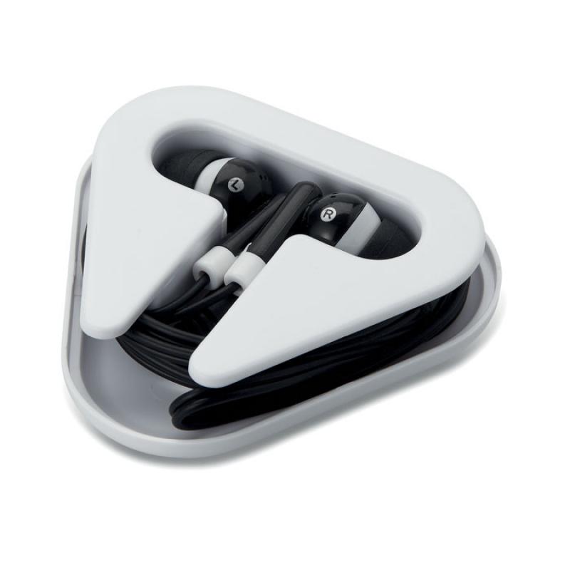 Auriculares en estuche triangular de PS. Cable de 120cm.