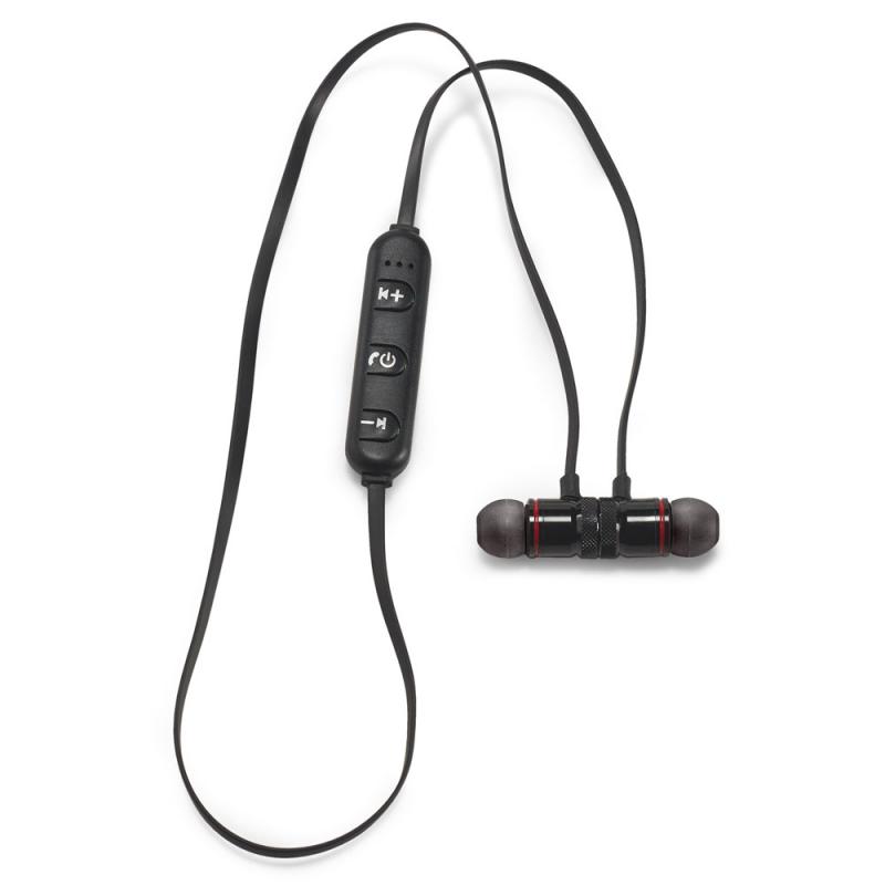 Auriculares magnéticos hechos en PC con transmisión a través de bluetooth 4.1. Permiten responder llamadas, controlar el volumen y conectarse a la lista de reproducción del dispositivo móvil. La batería tiene una capacidad de 50 mAh. Incluye cable USB/micro USB para su carga. Los auriculares se suministran en estuche de goma EVARecipiente :