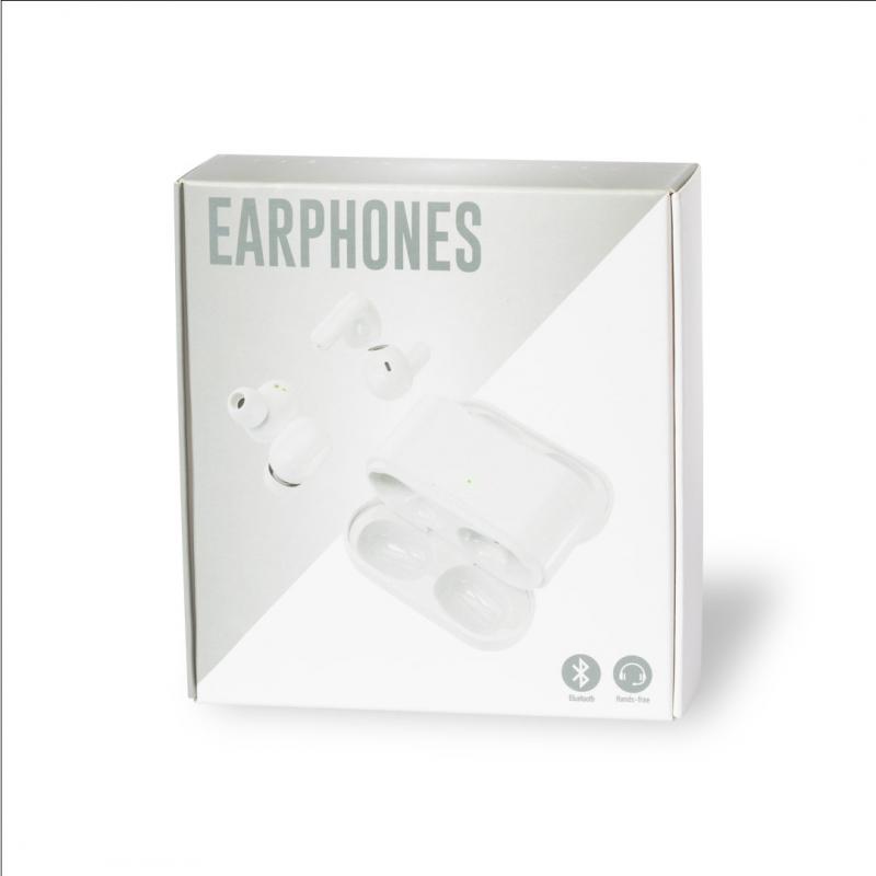 Estuche con 2 pares de auriculares intraurales en elegante acabado blanco y en 2 diseños ergonómicos. Conexión Bluetooth® 5.0, con botón de control táctil integrado en el auricular, base de carga a juego e indicadores de estado de carga. Función manos libres y recargables por USB. Presentados en una atractiva caja de diseño.