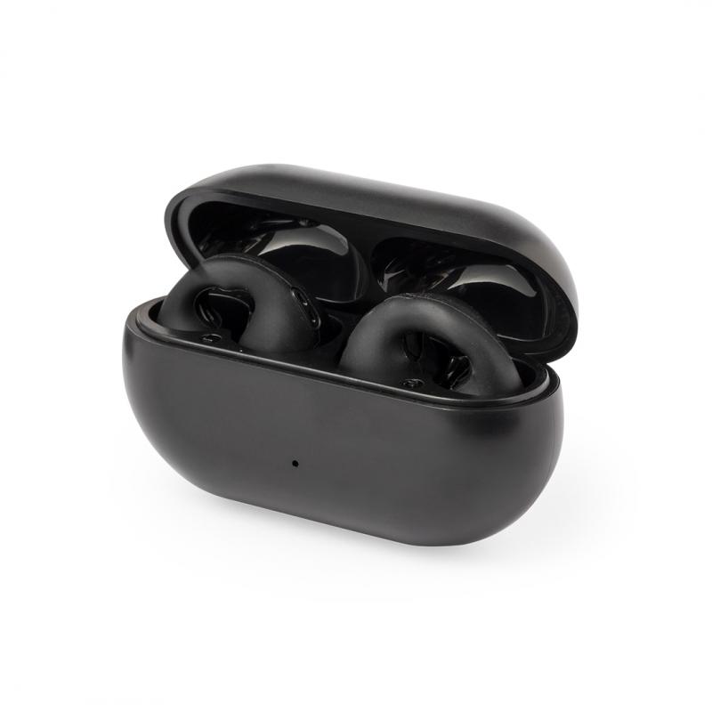 Auriculares open ear con conexión Bluetooth® 5.3 y función manos libres. Diseñados para ajustarse perfectamente a las orejas con su práctico clip, ofreciendo una experiencia auditiva sin molestias. Botón de control táctil integrado en el auricular, con base de carga a juego y batería de 200 mAh, con conexión Tipo C y cable de carga incluido. Presentados en caja individual de diseño kraft, con manual de instrucciones en español e inglés.Fabricados conforme a los estándares RoHS y en cumplimiento con los siguientes requisitos de seguridad:Sistema de protección contra sobrecalentamiento.Sistema de protección contra sobrecarga.Sistema de bloqueo para evitar cortocircuitos.
