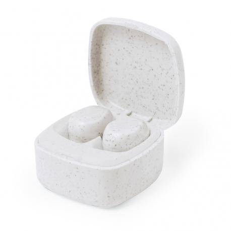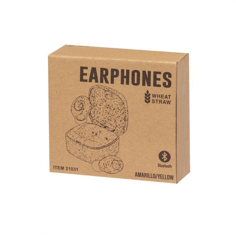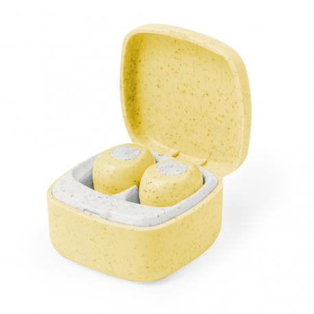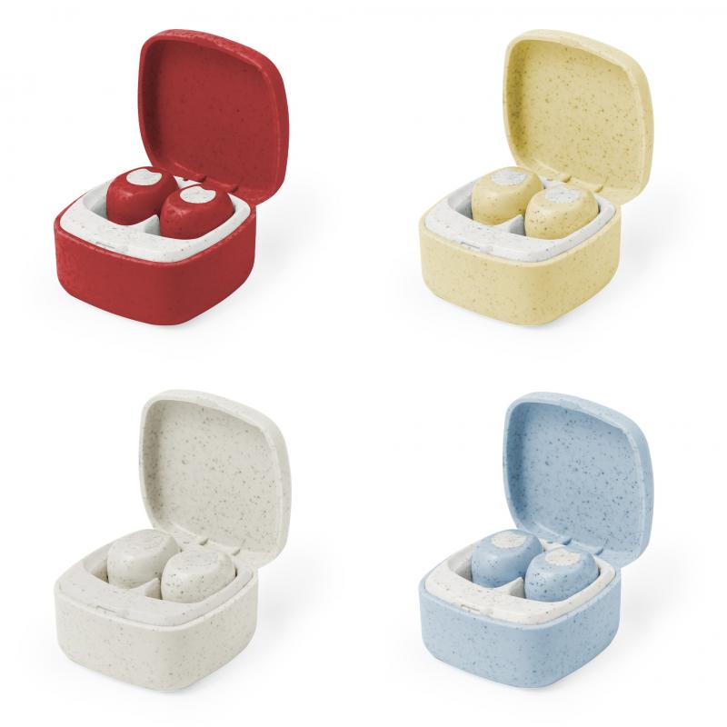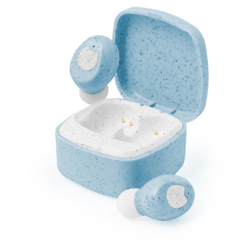 Auriculares intraurales fabricados en caña de trigo, con conexión Bluetooth® 5.0. De diseño ergonómico, incluyen botón de control táctil integrado en el auricular, cada uno con una batería de 30 mAh. Base de carga a juego con batería de 200mAh y luz LED de estado de carga. Función manos libres y recargables, con cable Tipo C incluido. Presentados en estuche individual de lujo con tapa de bisagra y en caja de diseño kraft. Disponibles en variada gama de colores, combinando la caña de trigo en color natural con originales tonos. Incluido manual de instrucciones en español e inglés.La caña de trigo fomenta la utilización de materias primas naturales, reduciendo así las emisiones contaminantes.Fabricados conforme a los estándares RoHS y en cumplimiento con los siguientes requisitos de seguridad:Sistema de protección contra sobrecalentamiento.Sistema de protección contra sobrecarga.Sistema de bloqueo para evitar cortocircuitos.