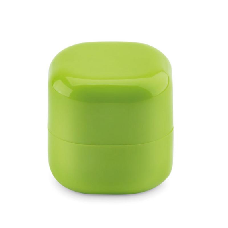 Bola de bálsamo labial natural en una caja cúbica de ABS. Testado dermatológicamente. SPF10.
