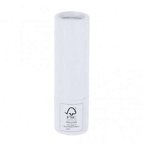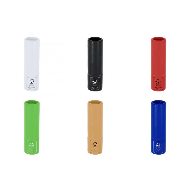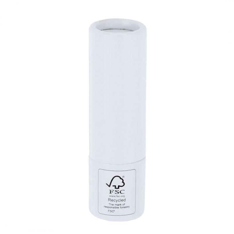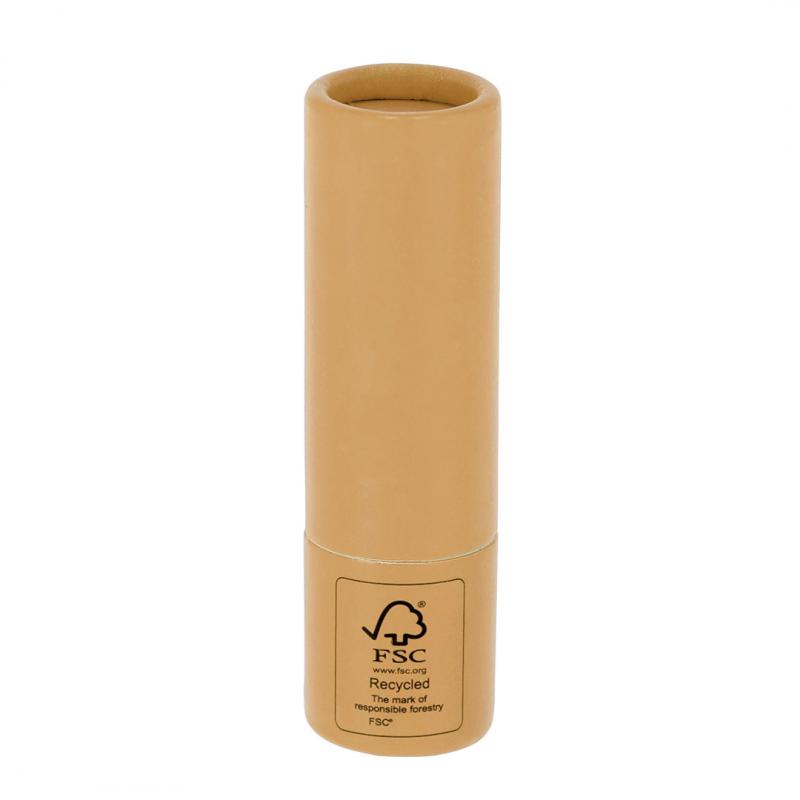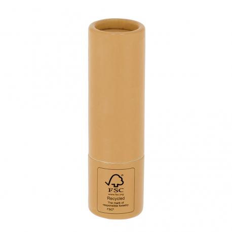 Bálsamo labial fabricado en cartón reciclado con certificado FSC. Aroma vainilla. Protección SPF15. Dermatológicamente testado. Distintivo FSC® sobre el envase.