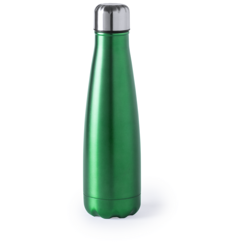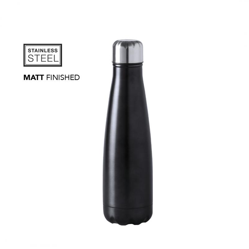 Bidón fabricado en acero inox de 630ml, con tapón de seguridad a rosca. Acabado mate en vivos y variados colores; presentado en caja individual.