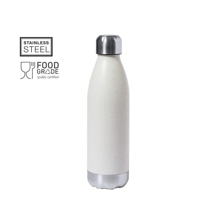 Bidón en combinación de PE veteado con base y tapón en acero inox. De 700ml de capacidad, con tapón de seguridad libre de BPA. Certificación Food Grade, garantizando la seguridad cuando los alimentos entran en contacto con el material usado para fabricar el producto.