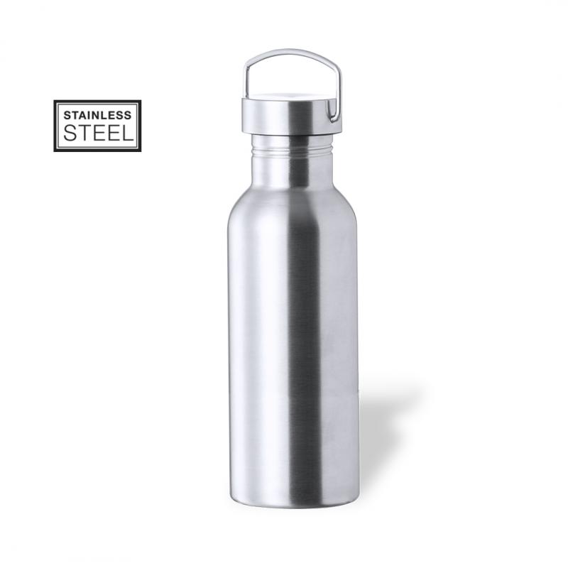 Bidón de 750 ml de capacidad, fabricado en acero inox de acabado brillo. Con original tapón a rosca en acero inox, a juego y con asa integrada. Libre de BPA y presentado en caja individual de diseño kraft.