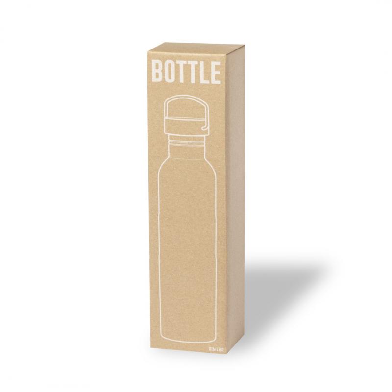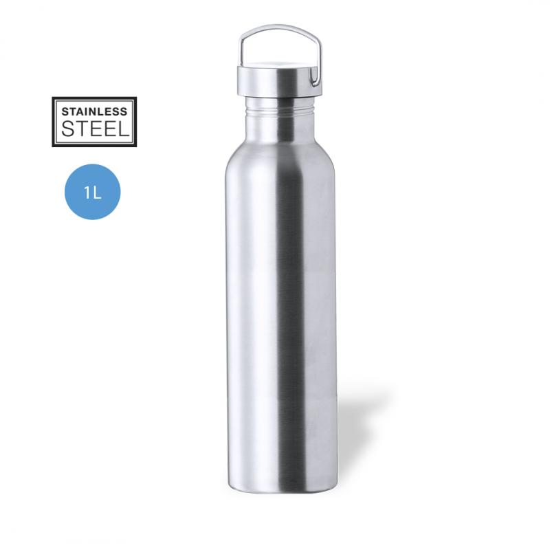 Bidón de 1 l de capacidad, fabricado en acero inox de acabado brillo. Con original tapón a rosca en acero inox, a juego y con asa integrada. Libre de BPA y presentado en caja individual de diseño kraft.